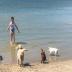 Am Strand von Lemmer ist ein Hundestrand. Dort dürfen die Hunde baden ohne Leine.