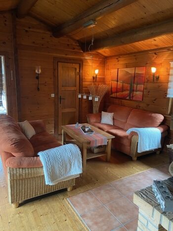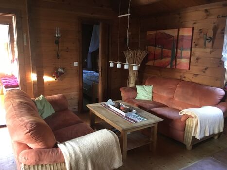 Es bietet ausreichend Platz für vier Personen, ist komplett eingerichtet mit allem, was man zum Wohnen und Wohlfühlen braucht. Egal, ob im Sommer oder Winter, es ist zu jeder Jahreszeit schön, seine Ferientage in einem gemütlichen Blockhaus zu verbringen - ob auf der Terrasse, im Garten oder entspannt vor dem Kamin.