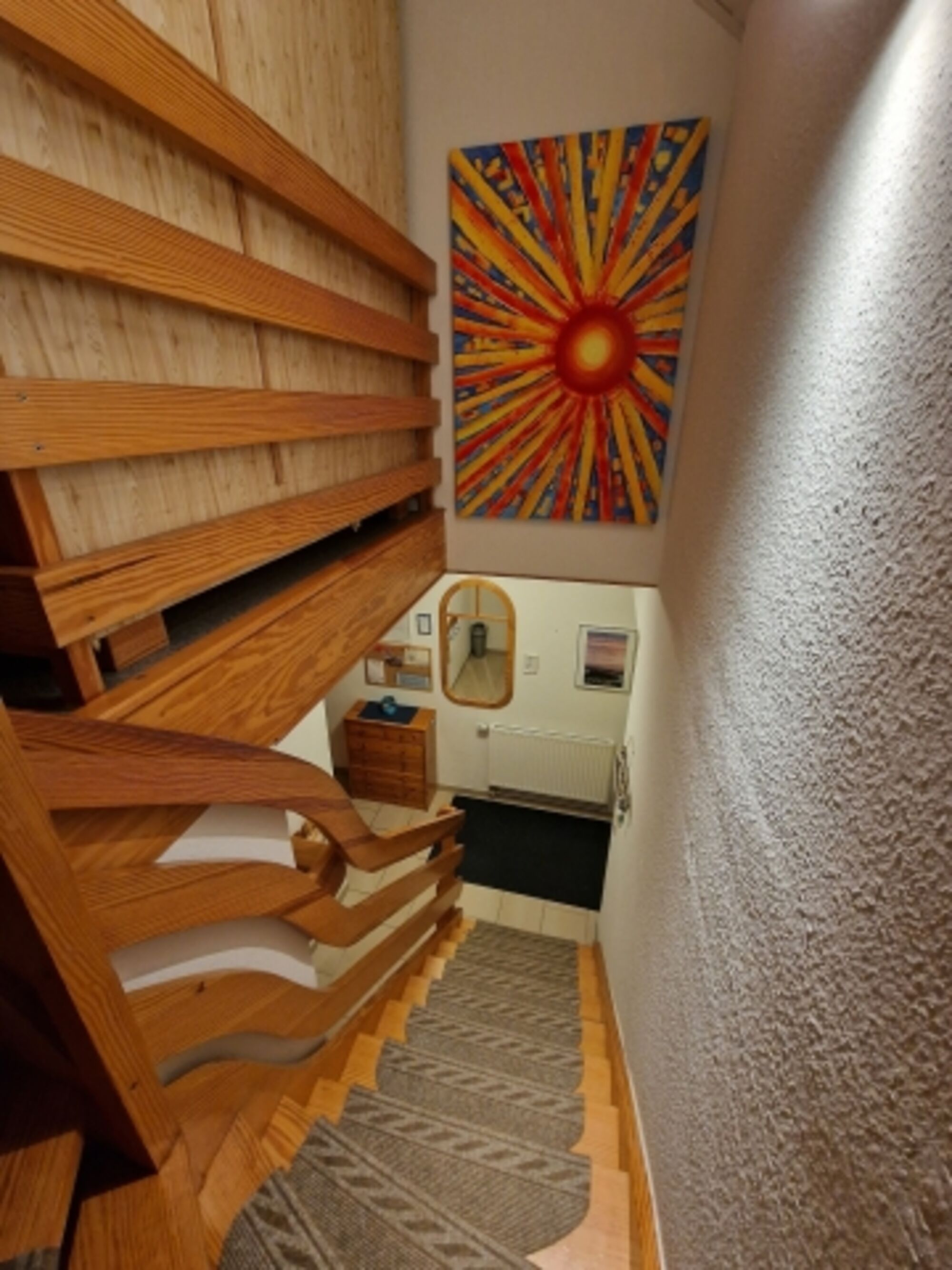 Hunde sind bei uns im Erdgeschoss willkommen, wo auch ein Schlafzimmer liegt (niemand muss also alleine unten bleiben).