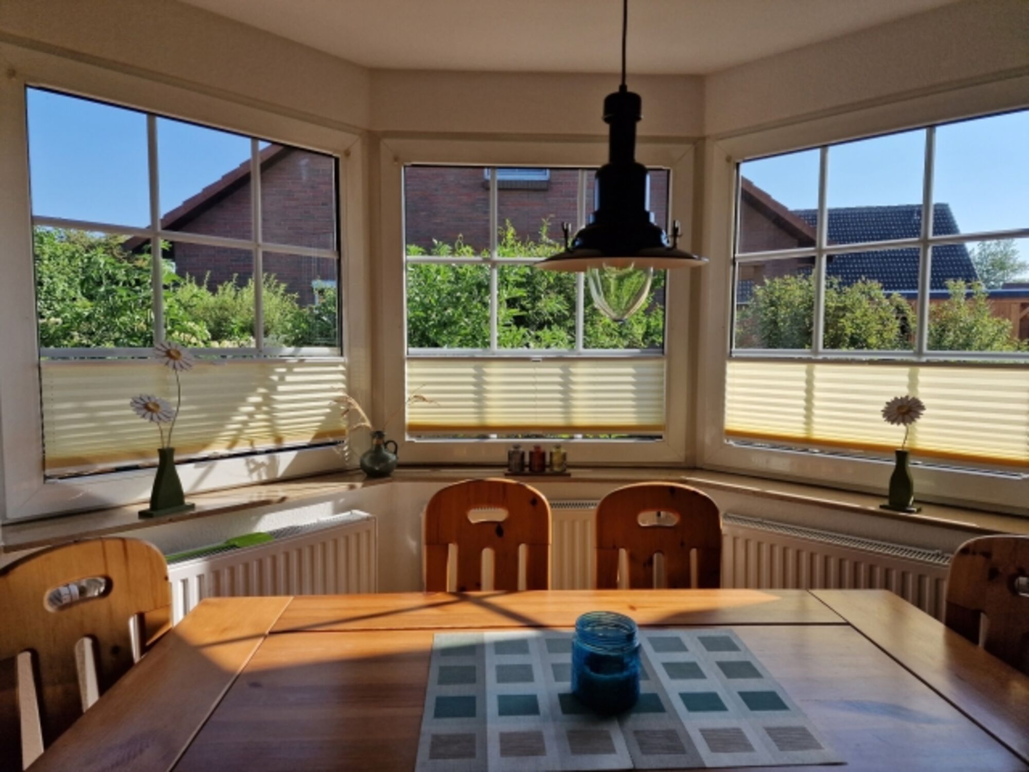 Geschlafen wird in 3 einladenden Schlafzimmern (eins unten, zwei im ersten Stock).