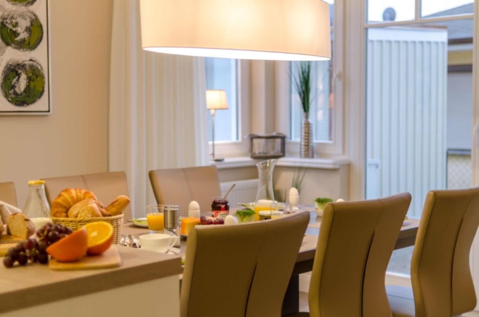 Beginnen Sie den Tag mit einem ausgiebigen Frühstück am gemütlichen Esstisch für 6 Personen oder auf der geschützten Terrasse in sonniger Südlage.