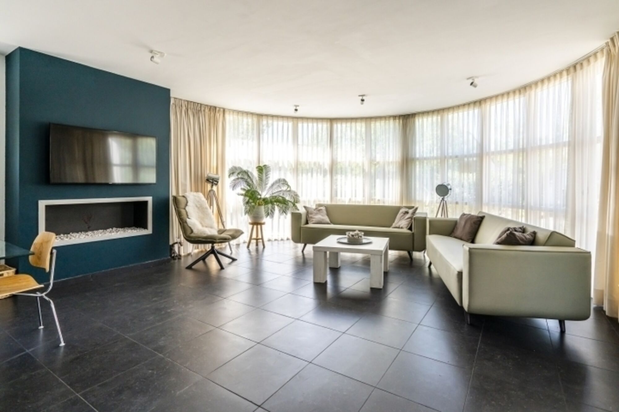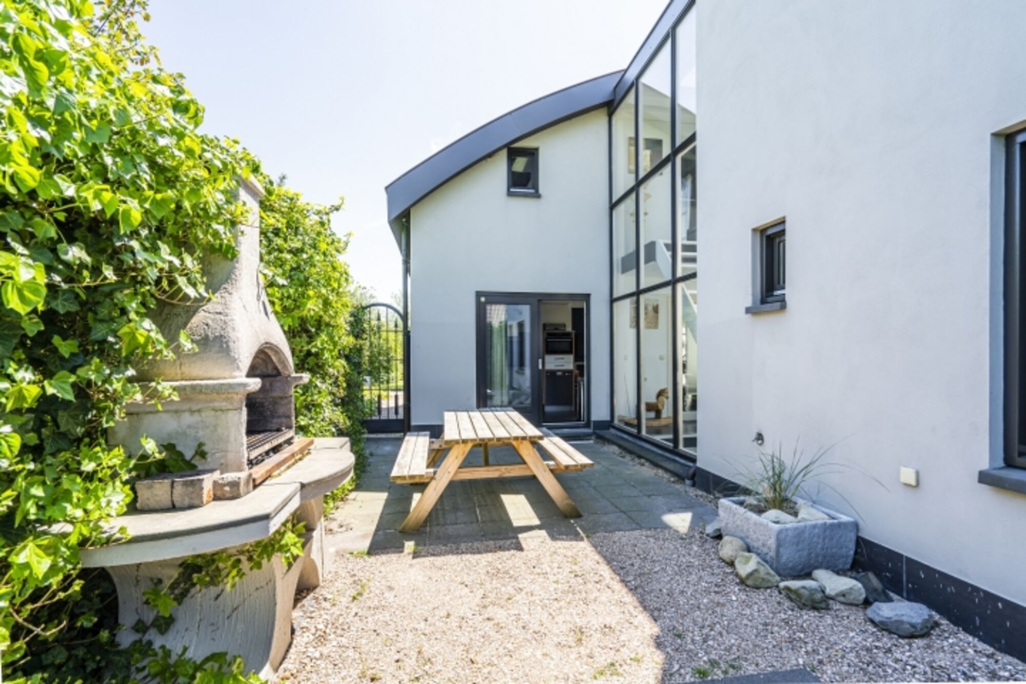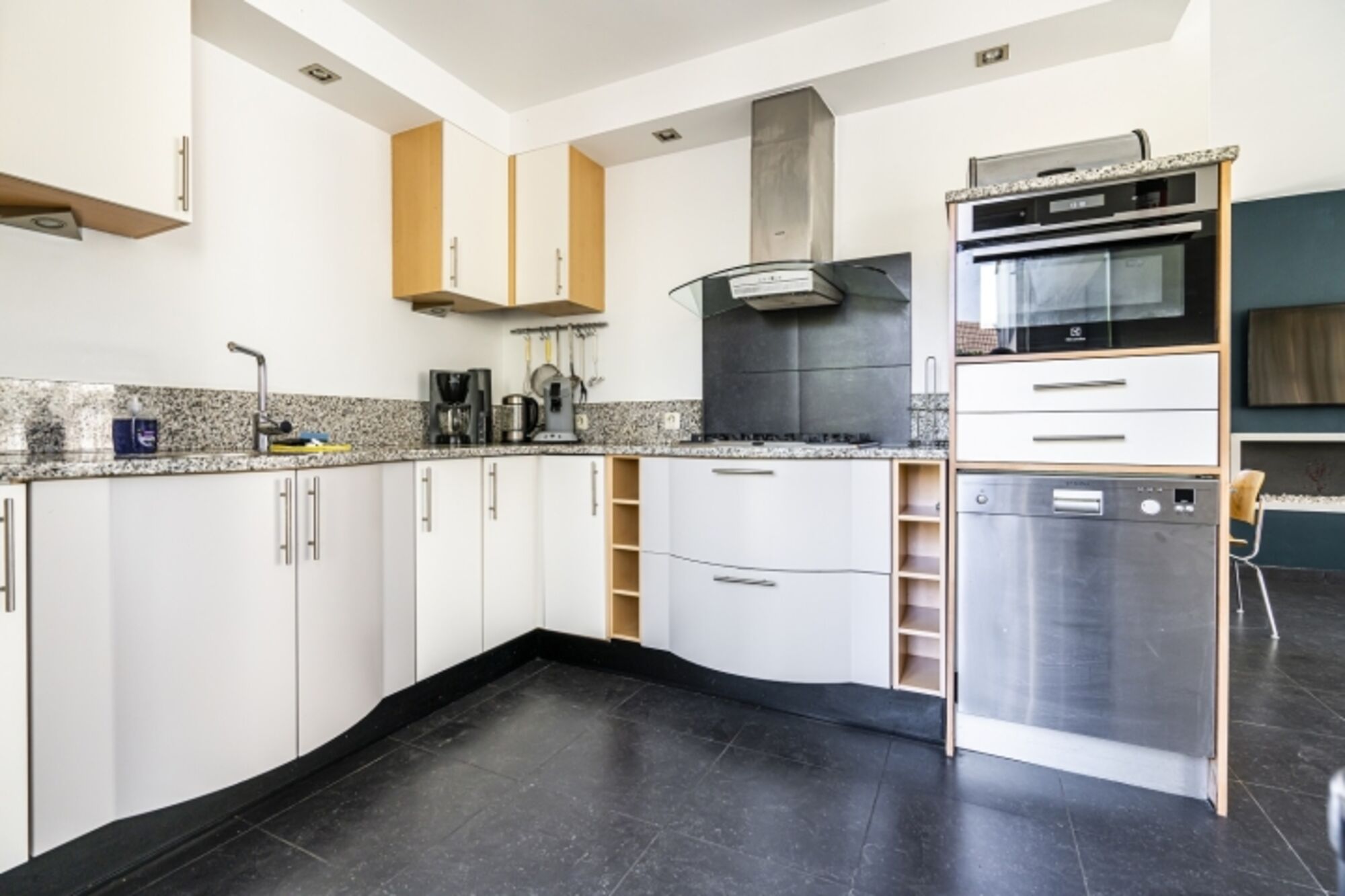 Die Luxus-Ferienvilla Westduin 19 verfügt über ein geräumiges Wohnzimmer, in dem 8 Personen den Gaskamin genießen können. Der eingezäunte Garten ist durch die Schiebetüren über die Küche leicht zugänglich. Die offene Küche ist komplett ausgestattet mit Geschirrspüler, amerikanischem Kühlschrank mit Gefrierfach, Gasherd und Kombimikrowelle. Ein Wasserkocher, eine Senseo und eine Filterkaffeemaschine sind ebenfalls vorhanden.