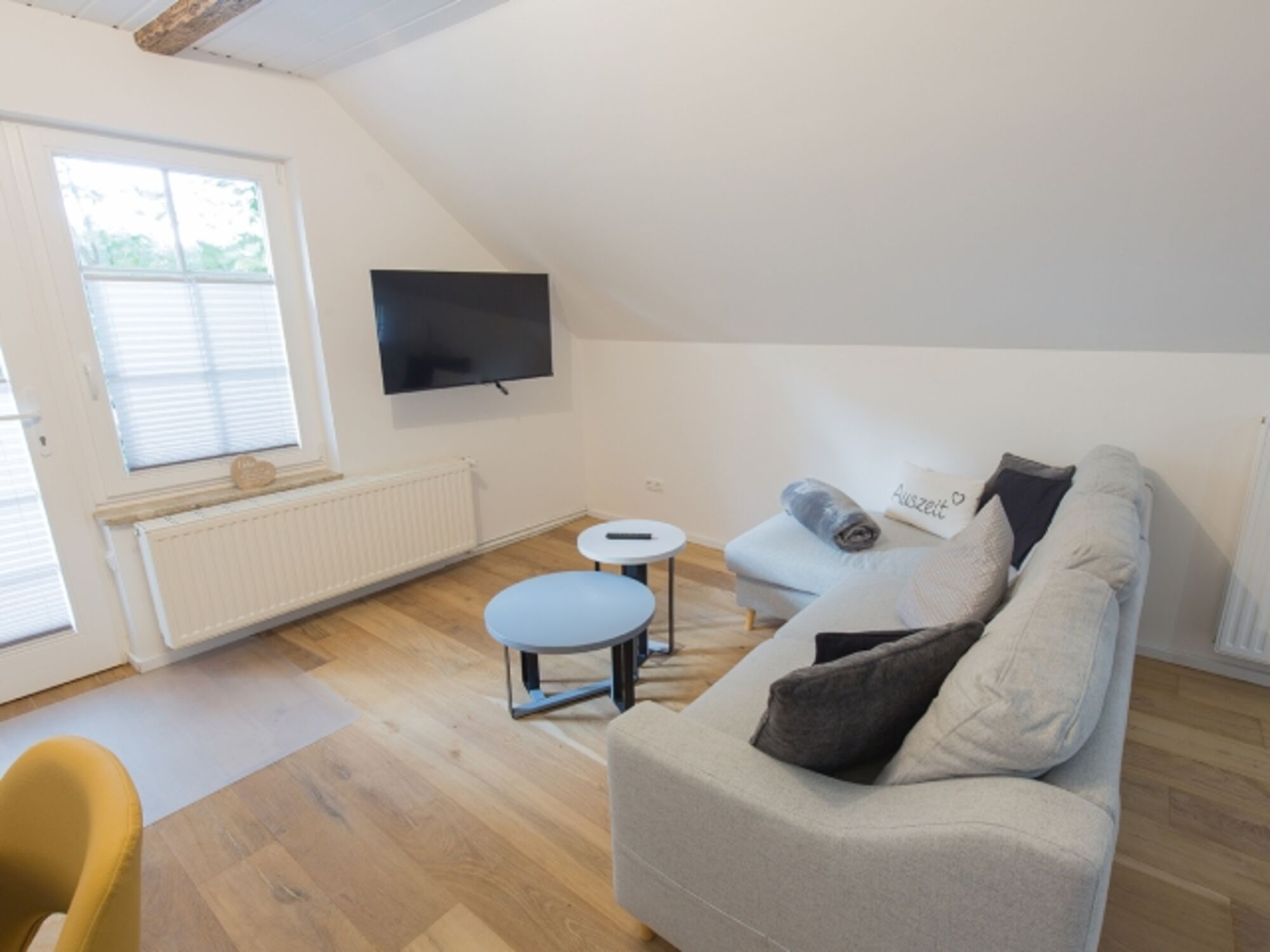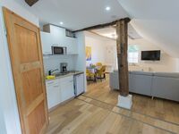 Unser schickes frisch saniertes Apartment "Reethuus 7" liegt inmitten grüner Natur in der Oldeoogstraße 8-10 und ist Teil der Ferienwohnanlage "achtteihn". Ihr PKW-Stellplatz liegt unmittelbar vor der Anlage. Das Bad hat Fußbodenheizung und im gesamten Objekt wurde Echtholz-Eichenparkett verlegt. Sie wohnen hier mit 1-2 Personen und Kleinkind sehr ruhig und können den Garten, die Sauna und einen schönen Weitblick genießen. Direkt im Eingangsbereich mit Garderobe gibt es links ein bequemes Ottomanen-Sofa mit Schlaffunktion. Hinter dem Essplatz finden Sie die komfortable Küchenzeile mit guter Bestückung. Vor dem sichtgeschützten Schlafbereich betreten Sie rechts das geräumige helle Duschbad. Lassen Sie den Tag bei einem Drink auf der Terrasse ausklingen.