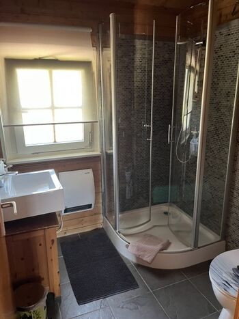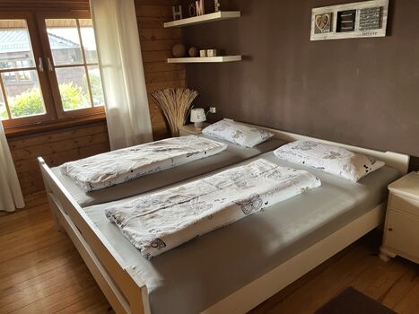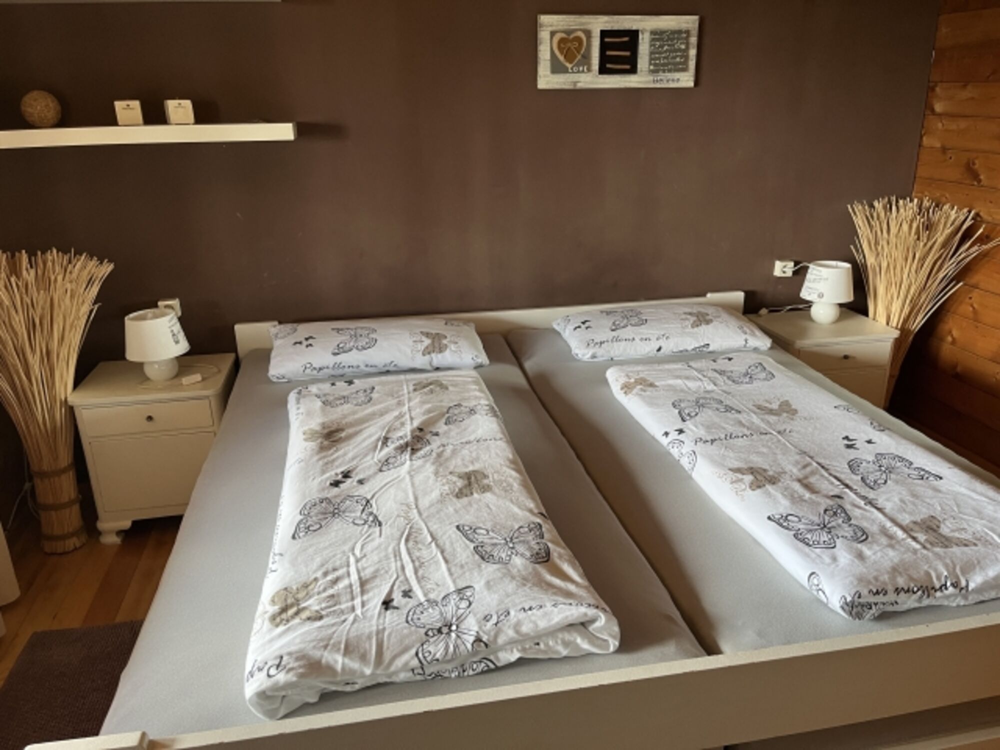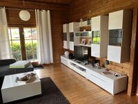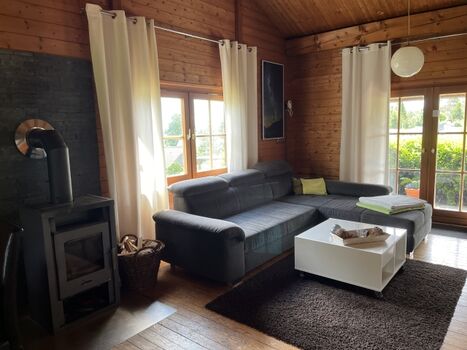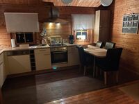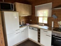 Wir haben das Haus komplett renoviert und so erwartet Sie ein modernes, schön eingerichtetes Blockhaus mit neuem Bad, zwei Schlafzimmern (Betten mit einer Größe von 200x200cm bzw. 140x200cm) und einem großen Wohnraum mit Kaminofen sowie offener und komfortabel eingerichteter Küche, die unter anderem Spülmaschine, Mikrowelle, Backofen und Kaffeemaschine beinhaltet.
