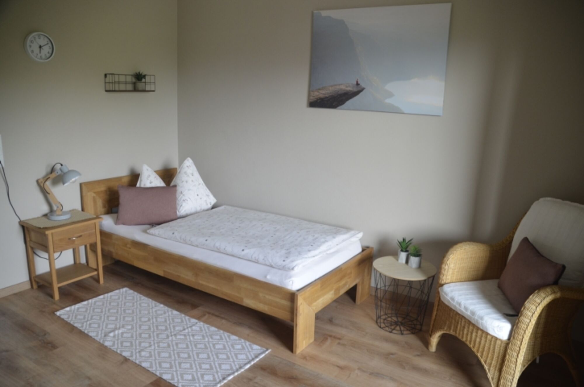 Über die gesamte Doppelhaushälfte finden Sie alles, was das Herz begehrt: Drei gemütlich eingerichtete Schlafzimmer: Ein Doppelzimmer und zwei Einzelzimmer (davon ein Einzelzimmer mit TV), ein neues Badezimmer mit Dusche und Badewanne im Obergeschoss. Eine voll ausgestattete, moderne Küche mit Spülmaschine, Mikrowelle, Kühlschrank mit Gefrierfach, Backofen und vier-Platten-Induktionskochfeld, ein separater Essbereich, das gemütliche Wohnzimmer mit Fernseher und CD Player, sowie ein WC im Erdgeschoss.