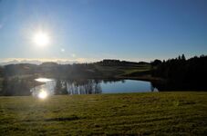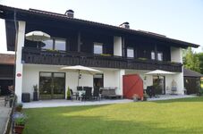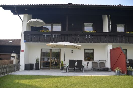Auf der großzügigen Sonnenterrasse mit angrenzender Liegewiese tanken Sie Energie und kühlen sich anschließend im nahegelegenen Badeweiher mit einem Sprung ins blaue Nass ab, oder Sie genießen, von unserem Balkon aus, den Blick auf die Berge.