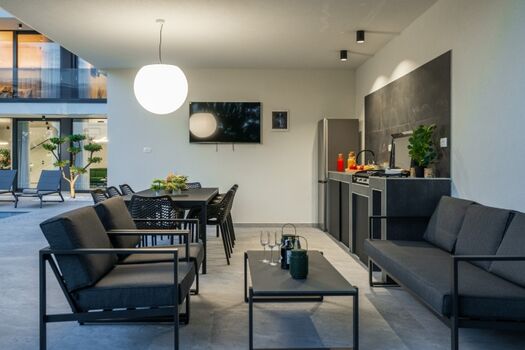 Willkommen in der luxuriösen Villa Avis mit 3 Schlafzimmern und 4 Bädern – eine Oase voller Komfort und Spaß. Das großzügige Wohnzimmer mit modernen Möbeln bietet eine angenehme Atmosphäre. Die Küche ist mit den modernsten Geräten ausgestattet und das Esszimmer im Freien und der Grill bieten die Möglichkeit, die Natur zu genießen.