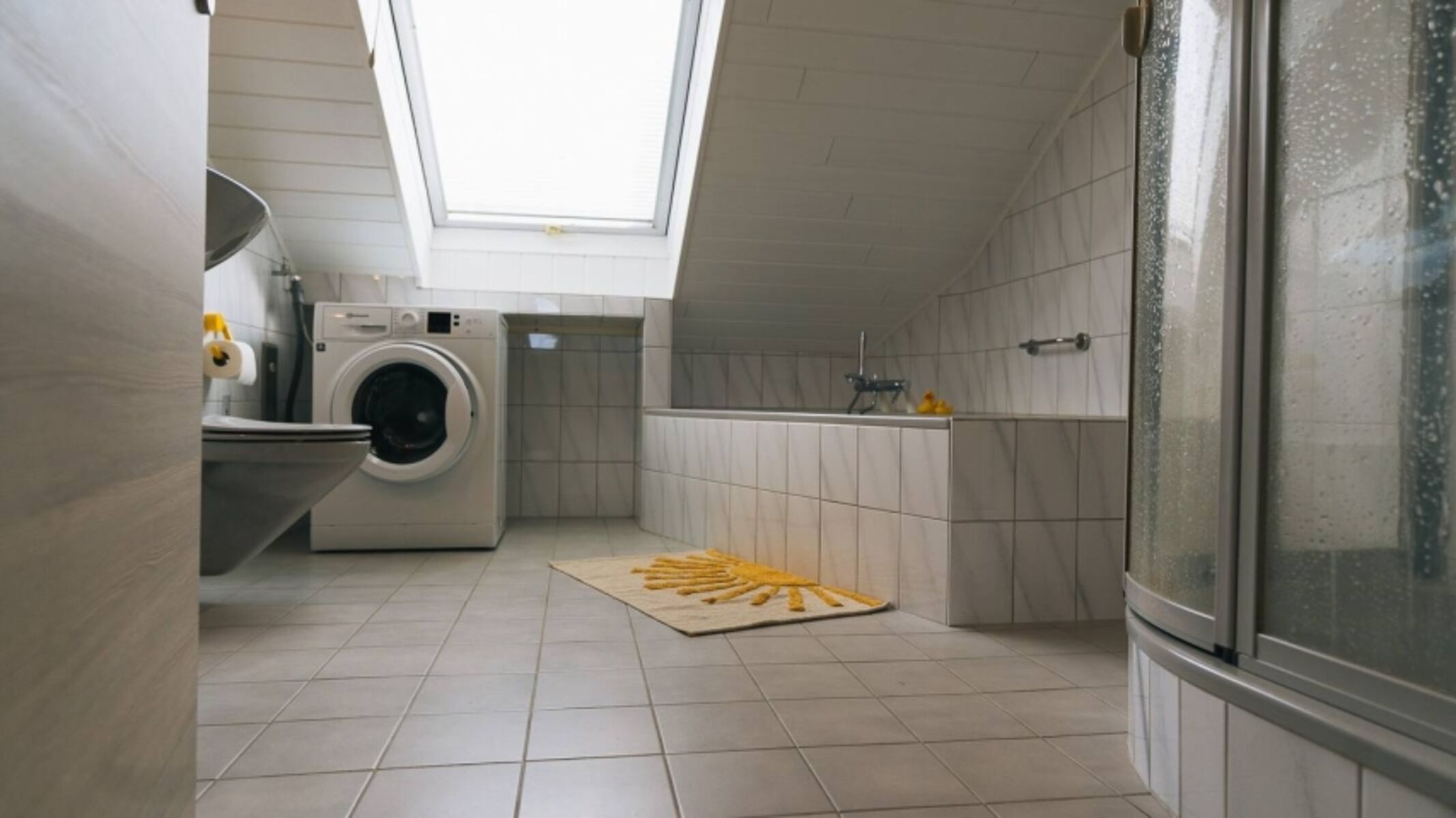 Bad: Im Badezimmer findet sich sowohl eine Badewanne, als auch eine Dusche. Außerdem können unsere Gäste die bereitgestellte Waschmaschine inklusive Tabs selbstverständlich kostenfrei nutzen.