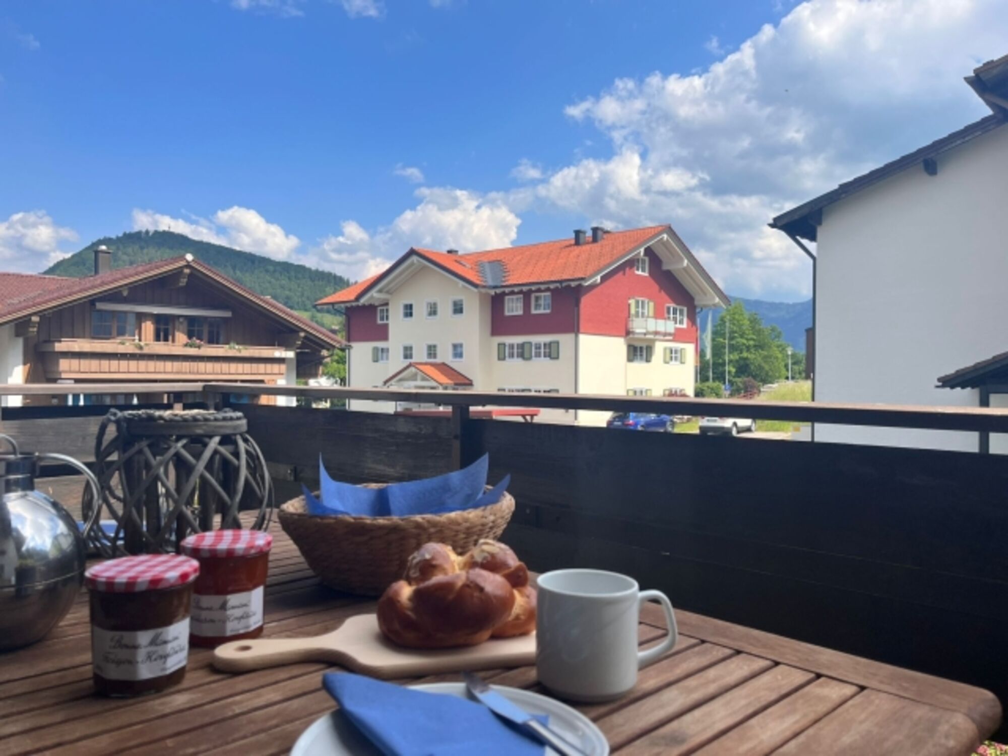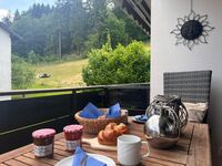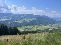 Wer es etwas weniger sportlich liebt, der kann gleich hinter der Ferienwohnung Klatschmohn durch den Wald zum Beispiel bis zum Café Paradies laufen und dort auf der riesengroßen Sonnen Terrasse den Ausblick auf die Berge Richtung Steibis genießen.