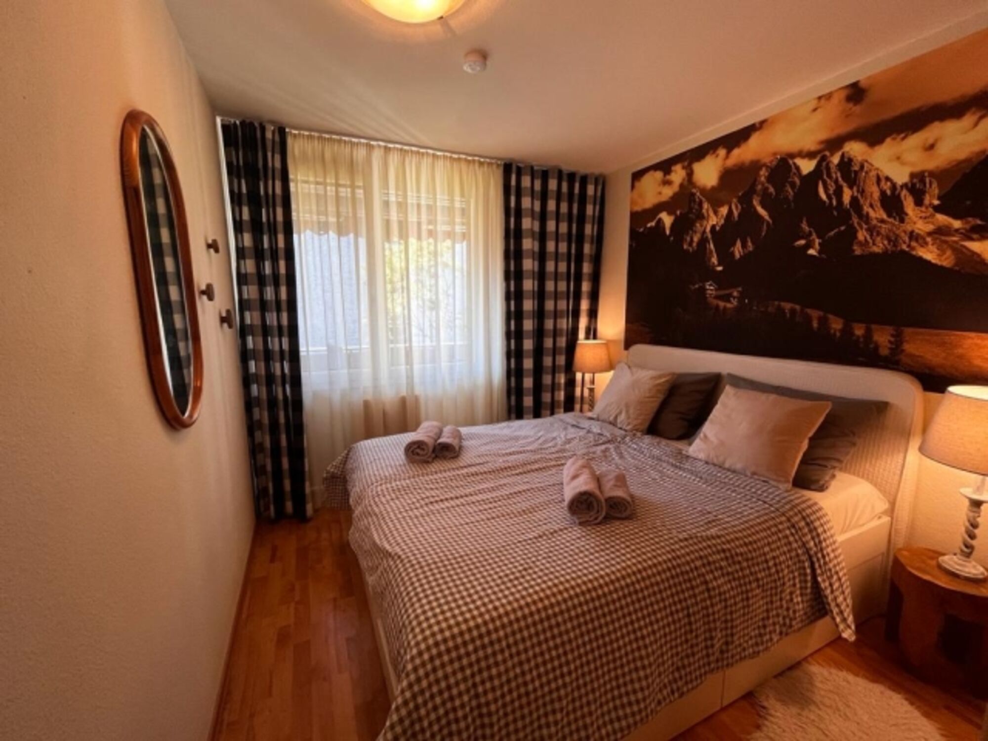 Doppelbett 1,60 x 2,00m, Spiegel, Leselampe am Bett, Fliegengitter