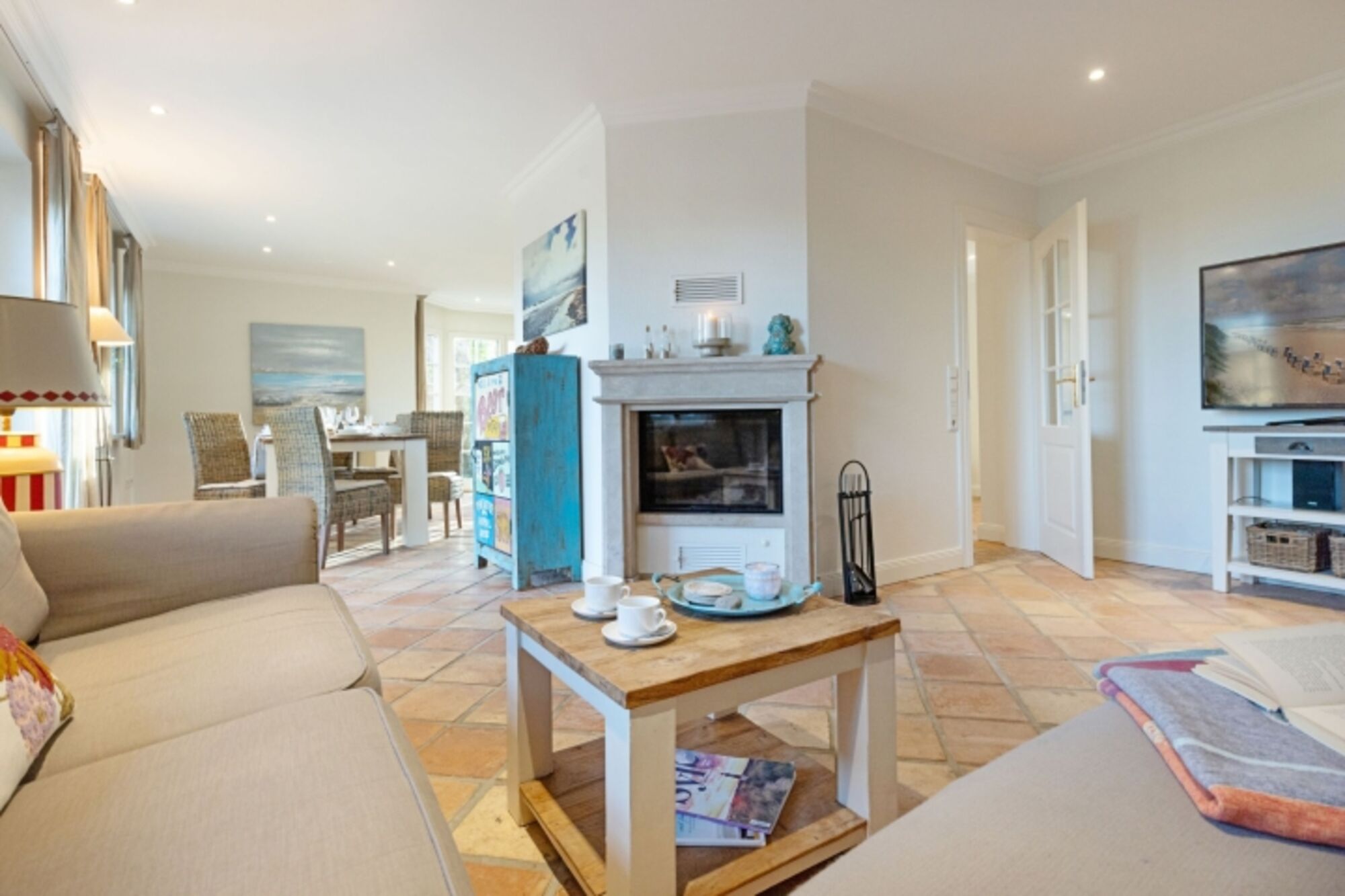 Im Erdgeschoss des Hauses finden Sie neben dem gemütlichen Wohnzimmer mit Kamin und Flachbildfernseher eine