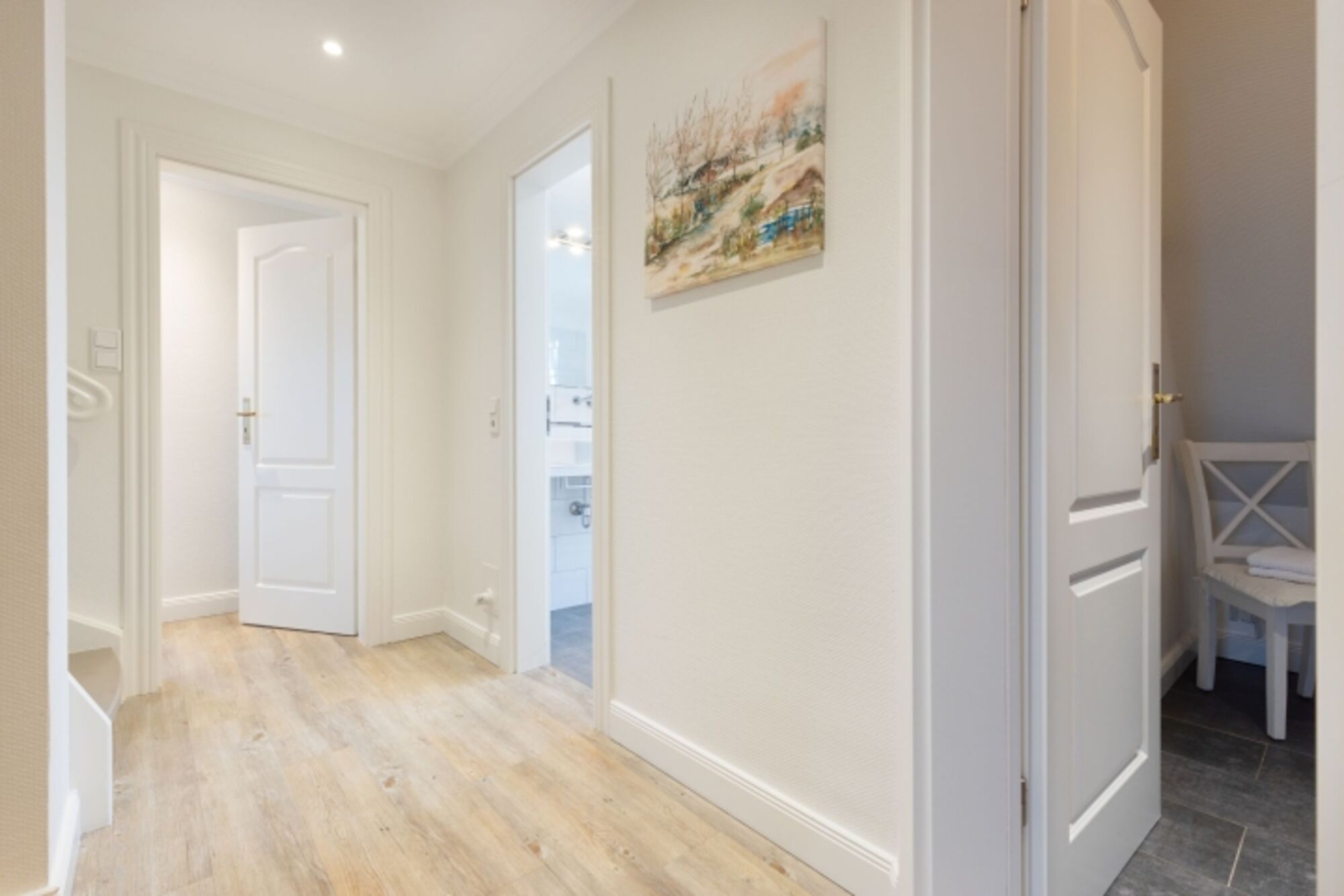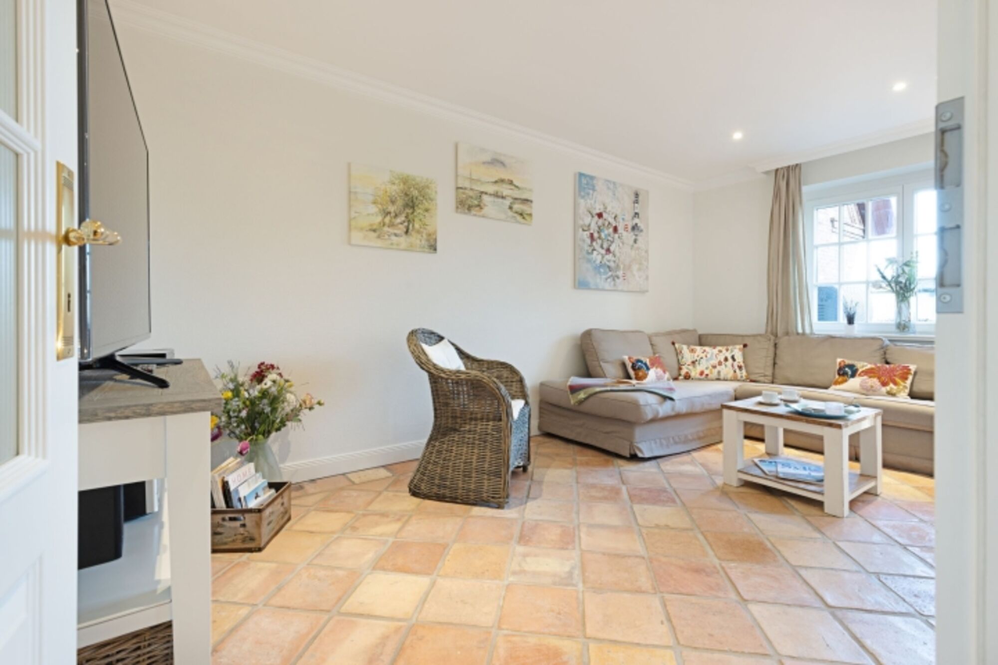 Helles Appartement mit kleiner Terrasse und Strandkorb im Erdgeschoss