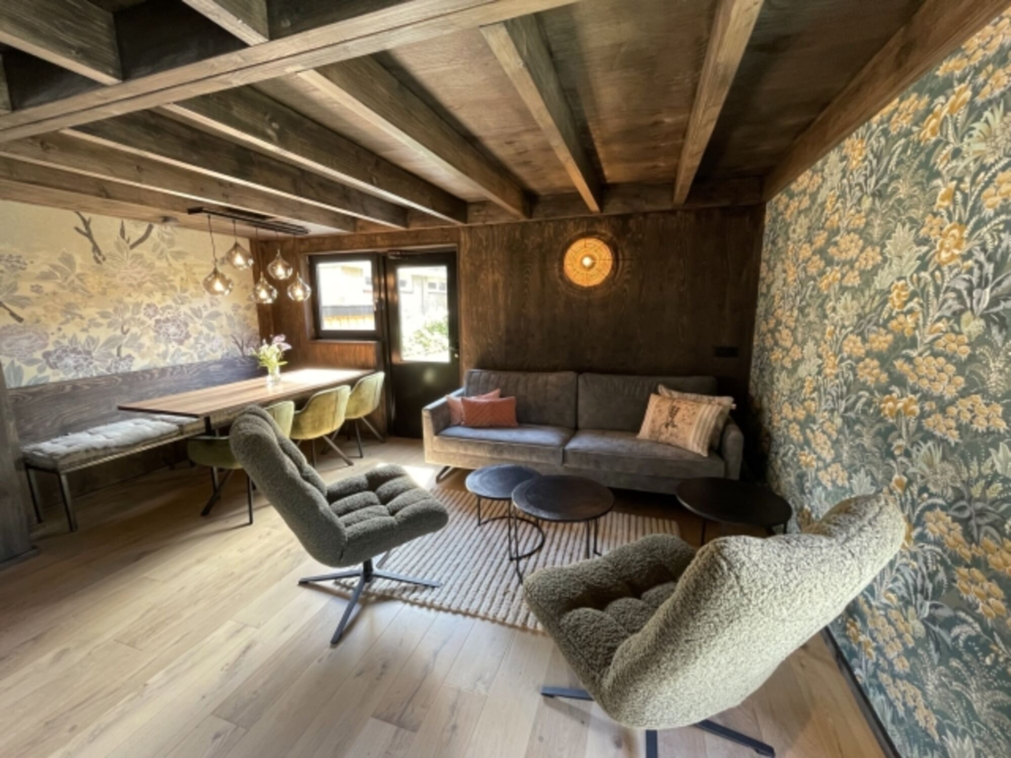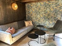 Das Wohnzimmer strahlt eine gemütliche Wärme aus und ist geschmackvoll eingerichtet. Es verfügt über eine bequeme Sitzecke, einen Smart-TV und einen ansprechenden Esstisch. Die offene Küche ist mit modernen Annehmlichkeiten wie einem Induktionsherd, einer Spülmaschine, einem großen Kühlschrank und einer Kaffeemaschine ausgestattet.