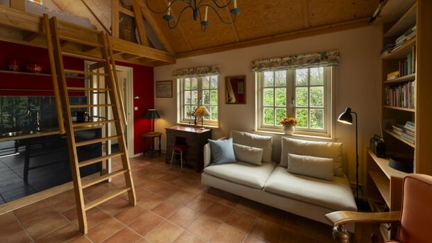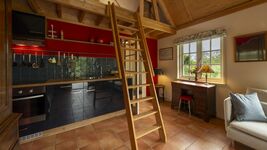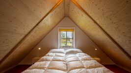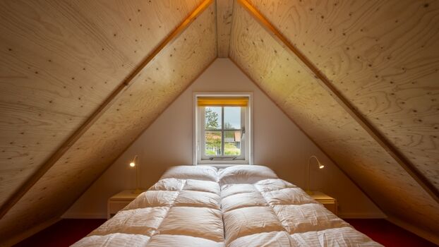 Der Schlafbereich mit Doppelbett befindet sich auf dem Dachboden, den Sie über die Treppe im Wohnzimmer erreichen. Bitte beachten Sie, dass dies eine steile Treppe ist!