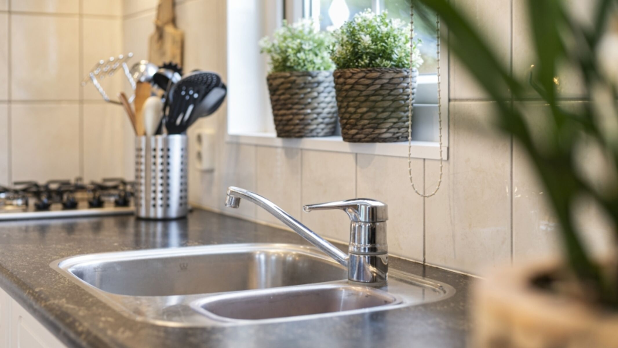 4-Platten Herd, Gasofen / Gasherd, Kühlschrank mit Gefrierfach, Senseo-Kaffeeautomat