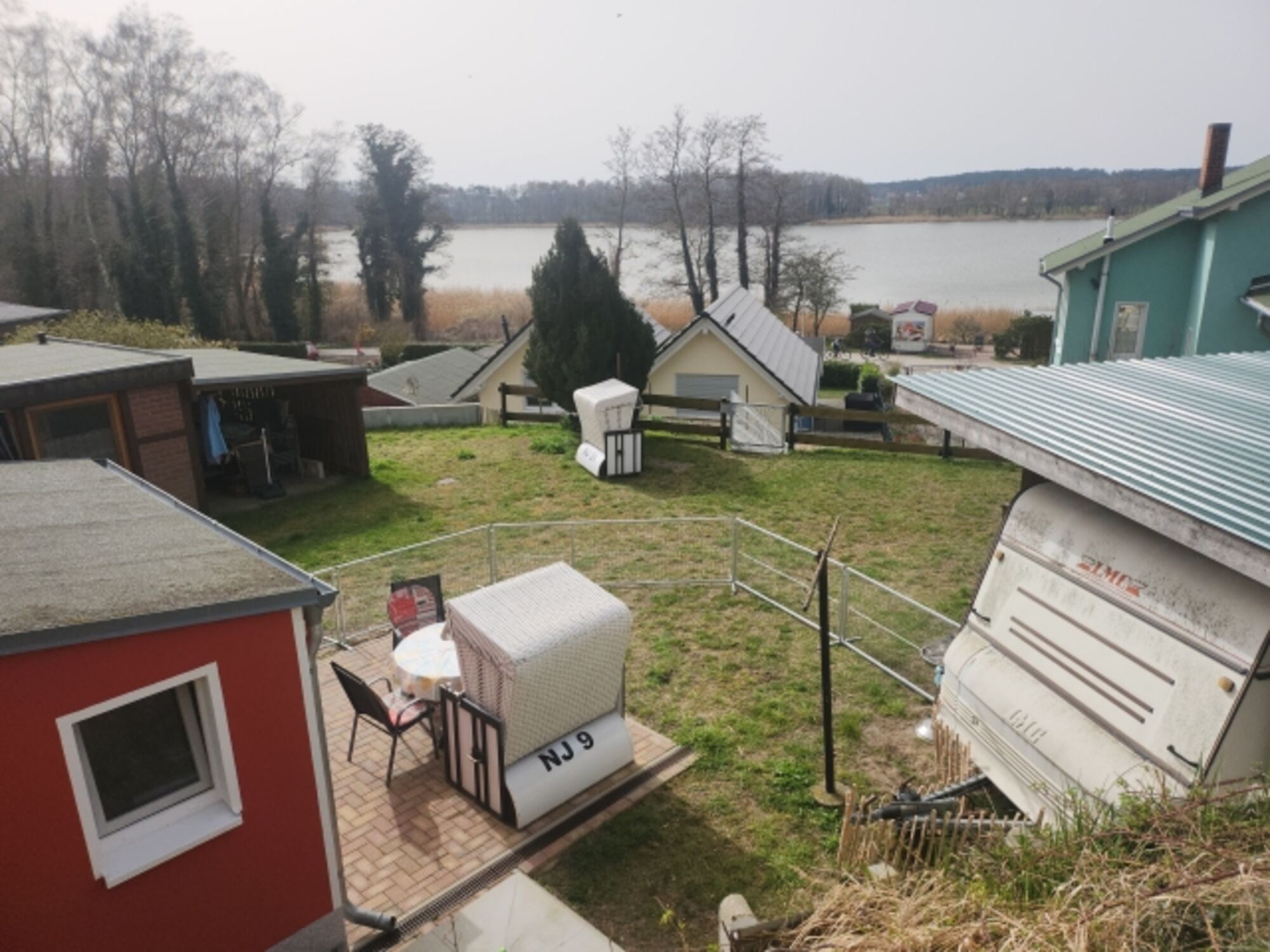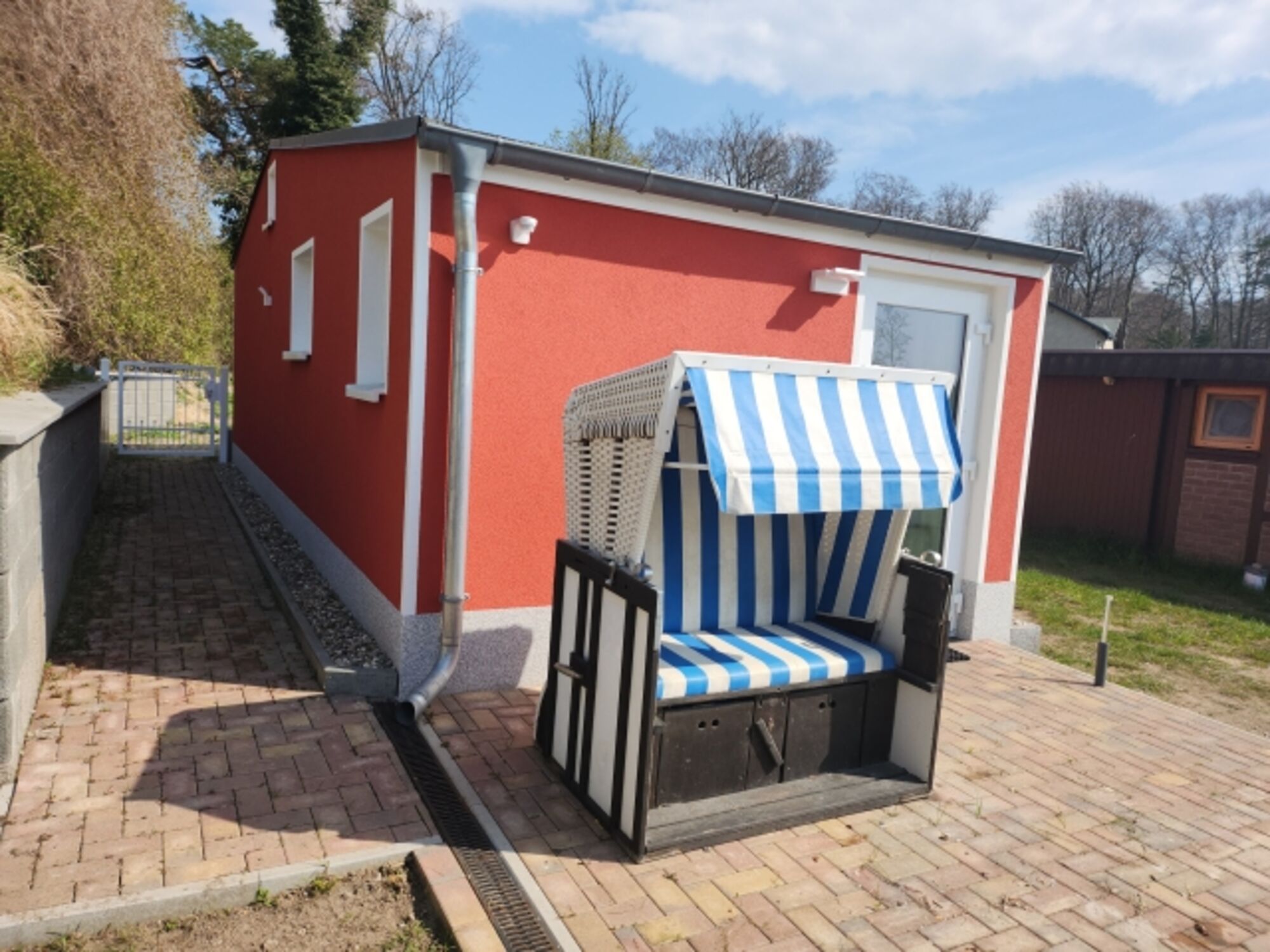Liegewiese, Strandkorb, Gartenmöbel, Kohlegrill, Bänke