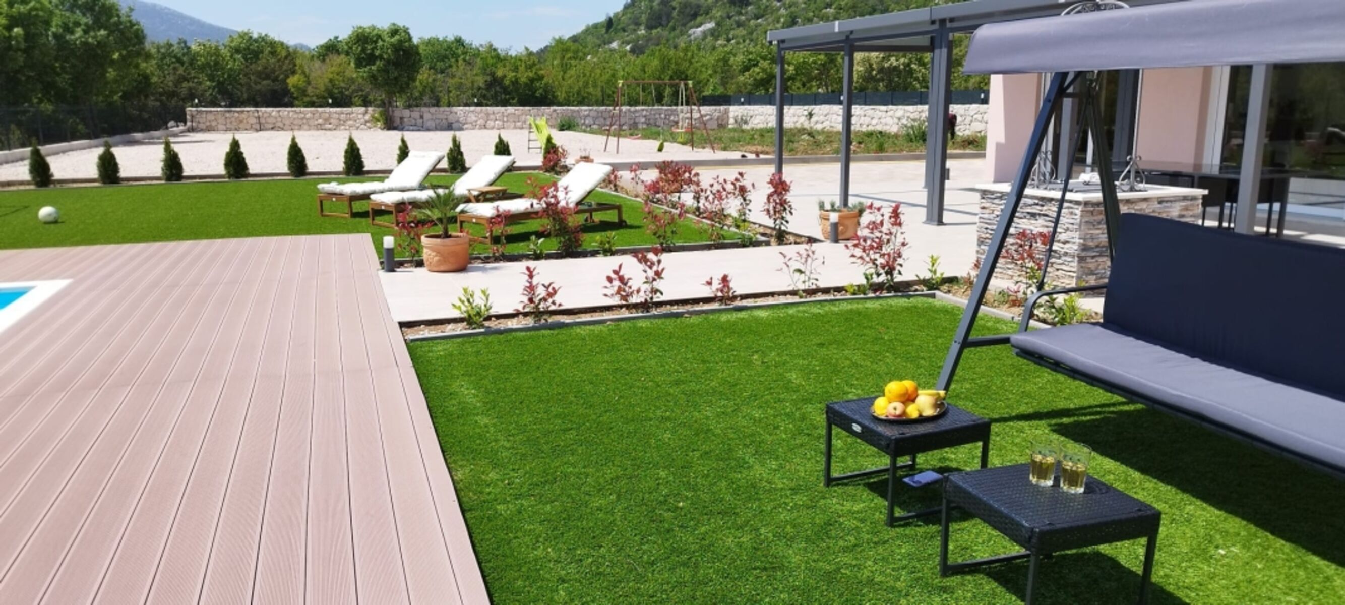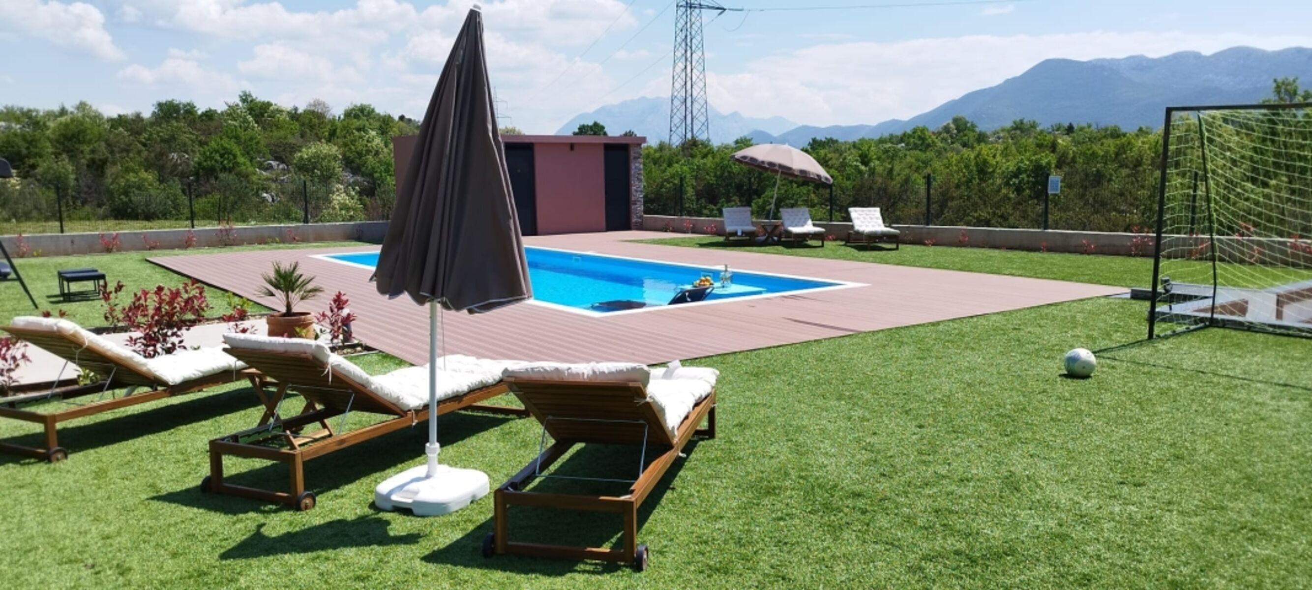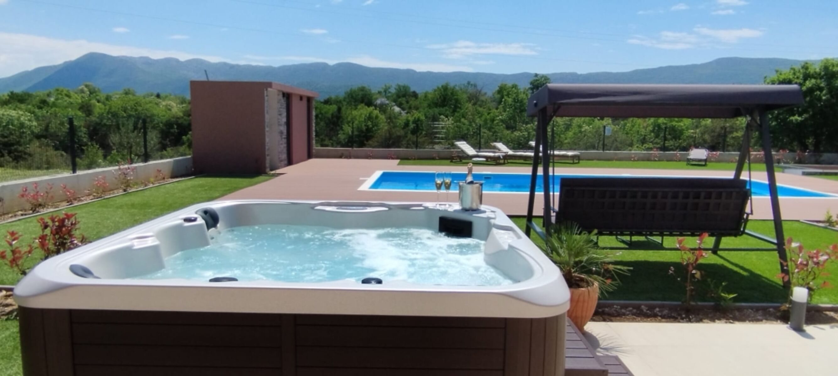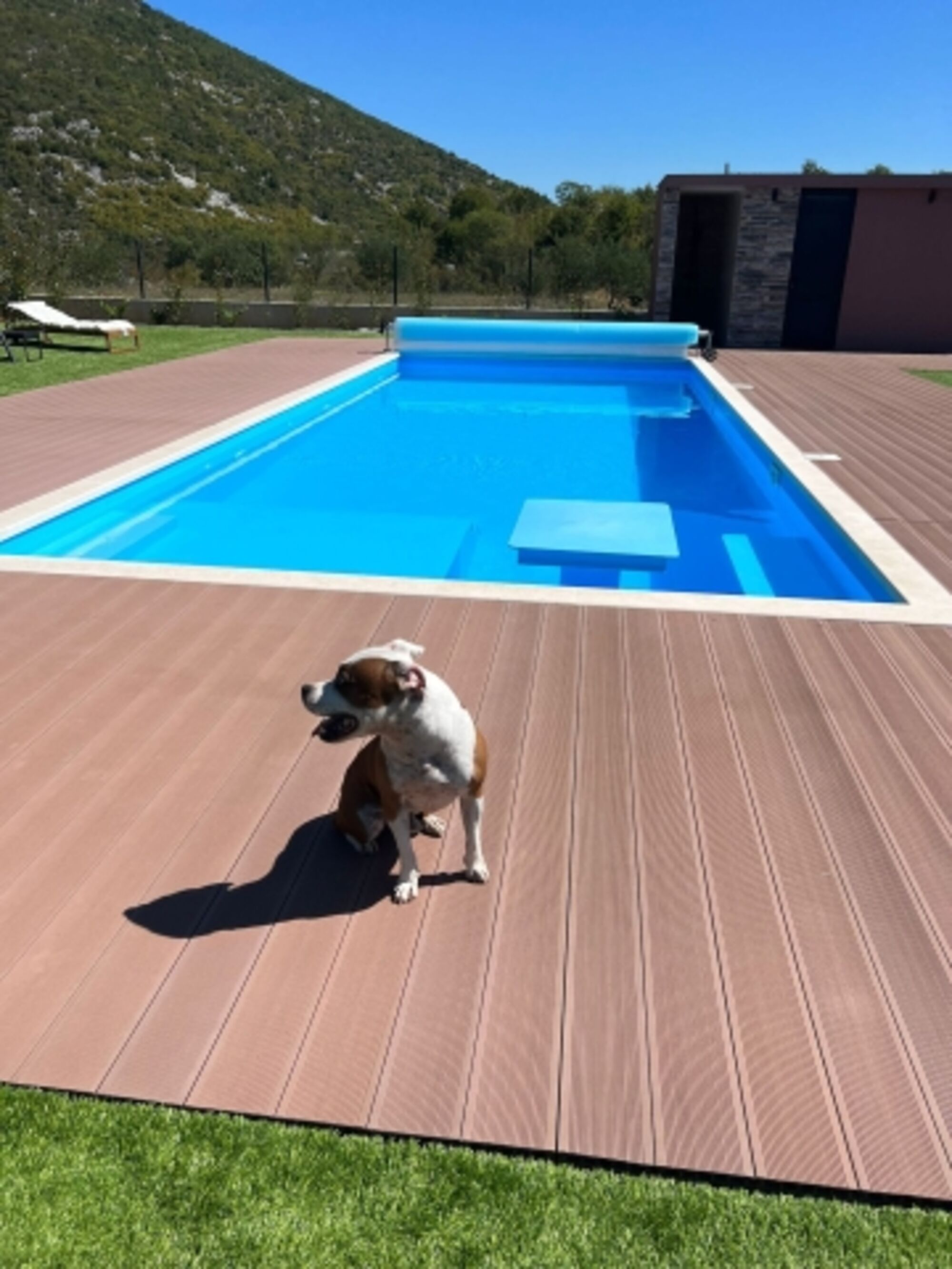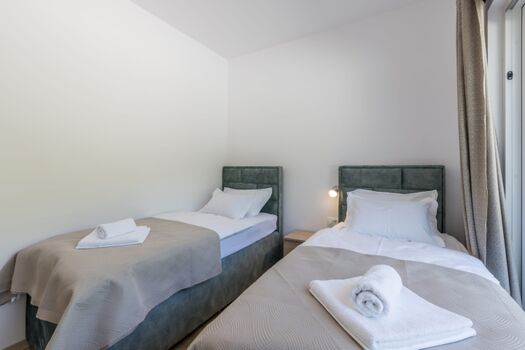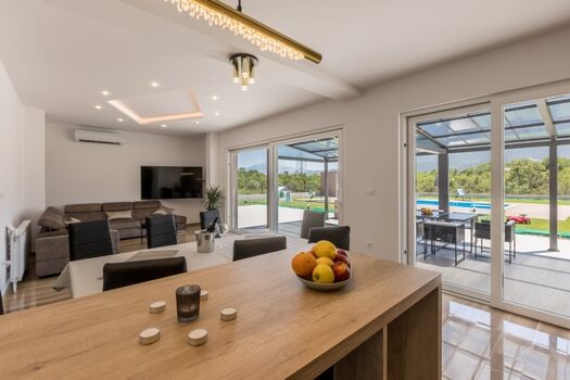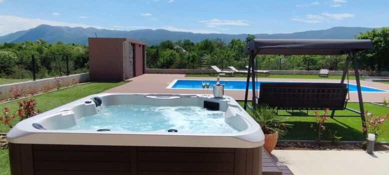 Ein Schlafzimmer ist für Rollstuhlfahrer geeignet (Toilette, Dusche ...), die gesamte Einrichtung befindet sich im Erdgeschoss mit einer Rampe am Eingang. Im großen Wohnzimmer gibt es ein Zustellbett mit großem Fenster, sodass Sie auch an kälteren Tagen die Natur beobachten können. Die Küche ist komplett mit einem Esstisch ausgestattet. Das Haus verfügt über eine Gemeinschaftstoilette mit Waschmaschine. Die Villa bietet eine Hydromassage-Badewanne für fünf Personen. Der beheizte Pool ist 4 x 10 m groß und verfügt über einen Tisch und Stühle im Pool. Es verfügt über eine Thermoabdeckung und ein beheiztes System. Neben dem Pool befindet sich eine Dusche und Toilette... Im Garten gibt es auch einen Esstisch und einen Grill mit allen notwendigen Geräten. Am Pool gibt es eine Loungebar und Sonnenliegen. Für Kinder gibt es Spielplätze mit Badminton, Bällen und Fußbällen.