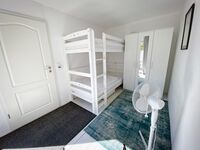 Das Etagenbett ist 0,90*2,00 und auch für Erwachsene geeignet. Das Schlafzimmer 2 ist nur durch Schlafzimmer 1 oder von der Terrasse zu begehen. Spiegel, Leselampe am Bett