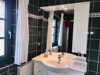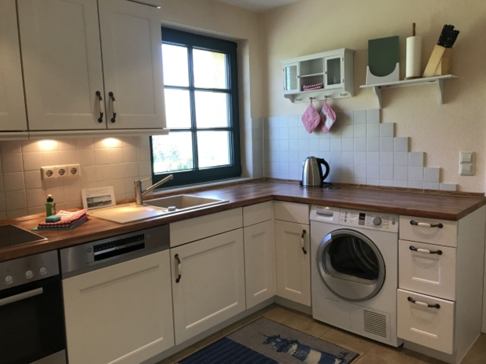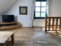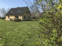 Das Ferienhaus mit vier Zimmern bietet auf etwa 120 m² Platz für bis zu fünf Personen (Nichtraucher). Ein Schlafzimmer verfügt über ein Doppelbett (180 cm x 200 cm), ein weiteres Schlafzimmer im Obergeschoss über zwei Einzelbetten (110 cm x 190 cm und 90 cm x 190 cm). Darüber hinaus kann im Obergeschoss auch ein Schlafsofa im Wohnzimmer genutzt werden (Liegefläche 140 cm x 200 cm). Das Bad verfügt über Dusche und WC. Auch ein Föhn liegt für Sie bereit. Die Küche ist mit Elektroherd, Backofen, Kühlschrank, Tiefkühlfächer, Wasserkocher, Toaster, Kaffeemaschine, Handrührgerät, Stabmixer und sogar einer Spülmaschine ausgestattet. Desweiteren befindet sich im Erdgeschoss ein Wohn-Ess-Bereich mit TV (ein zweites Gerät befindet sich im Wohnzimmer des Obergeschosses), DVD-Player sowie Stereoanlage mit CD-Player. Ein Staubsauger und eine Waschmaschine (im Bad) sind ebenso wie ein Wäschetrockner (in der Küche) vorhanden. Bei Bedarf sind auch alle Räume beheizbar. Der Außenbereich bietet Ihnen einen Garten, eine Terrasse und vier Pkw-Stellplätze zur privaten Nutzung. Im Garten finden Sie ein Gartenhaus, eine Schaukel, Sonnenliegen sowie eine Grillmöglichkeit vor. Das Grundstück ist komplett mit einer 1,60 m hohen Zaunanlage eingefriedet und daher bestens für Gäste mit Kindern und Hunden geeignet.