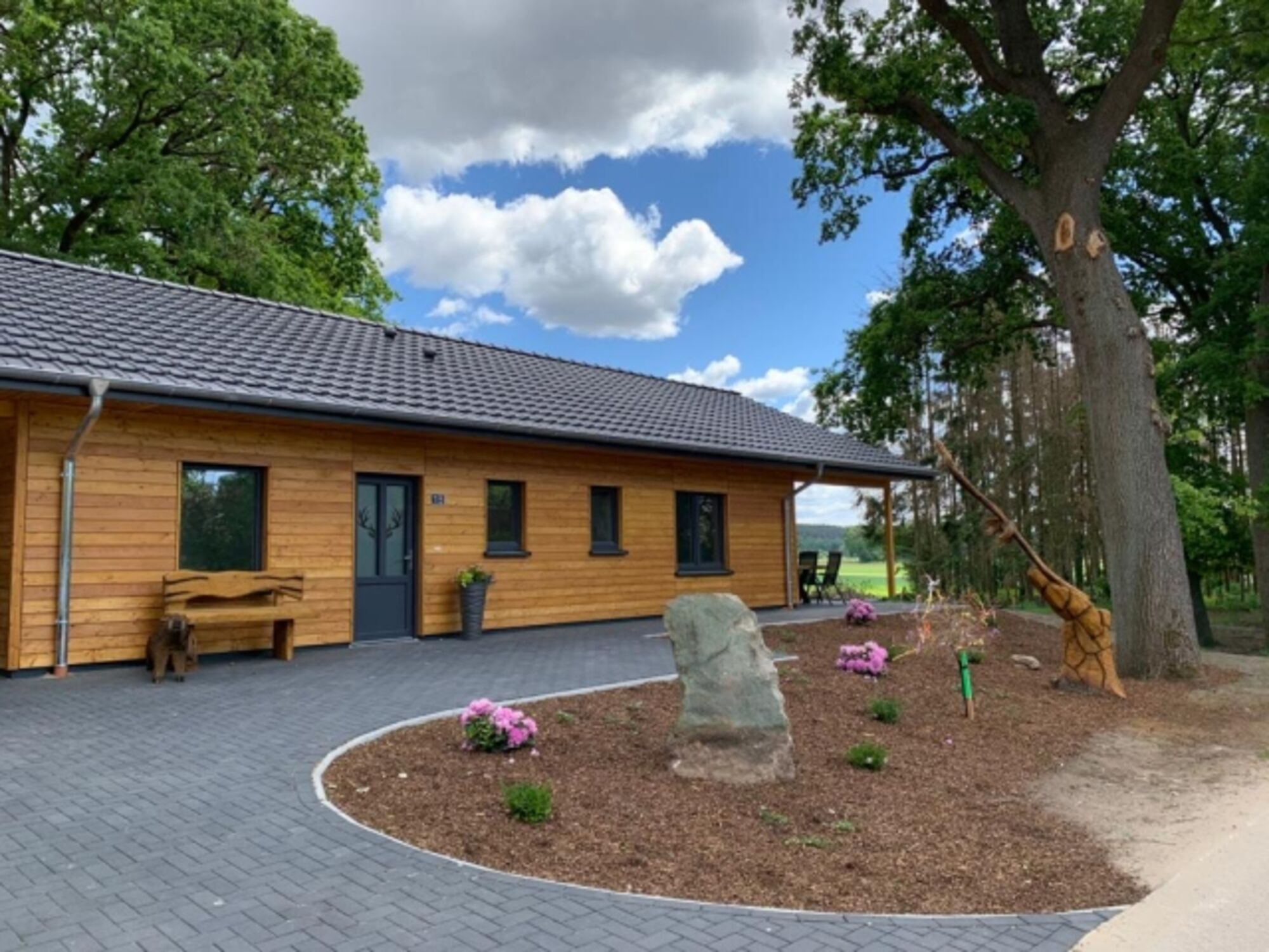 Das Ferienhaus steht auf einem eingezäunten Grundstück umgeben von Eichen. Das Holzhaus bietet wohnlichen Komfort und lädt zum Entspannen ein. In direkter Umgebung befindet sich das Naturbad Wittfeitzen (5 min. Fußweg). Zur Verfügung stehen ein großer Wohn-/Essbereich mit direktem Zugang zur großzügigen und überdachten Terrasse. Ein hochwertiger Gasgrill steht für einen gemütlichen Abend bereit. Die Küche ist ausgestattet mit allem Notwendigen. Zur Kühl-Gefrierkombination gibt es einen zusätzlichen kleinen Getränkekühlschrank und einen größeren Getränkekühlschrank im Abstellraum. Das Haus wird komfortabel durch eine Fußbodenheizung beheizt. Wir haben im ganzen Haus Fliegengitter montiert.
