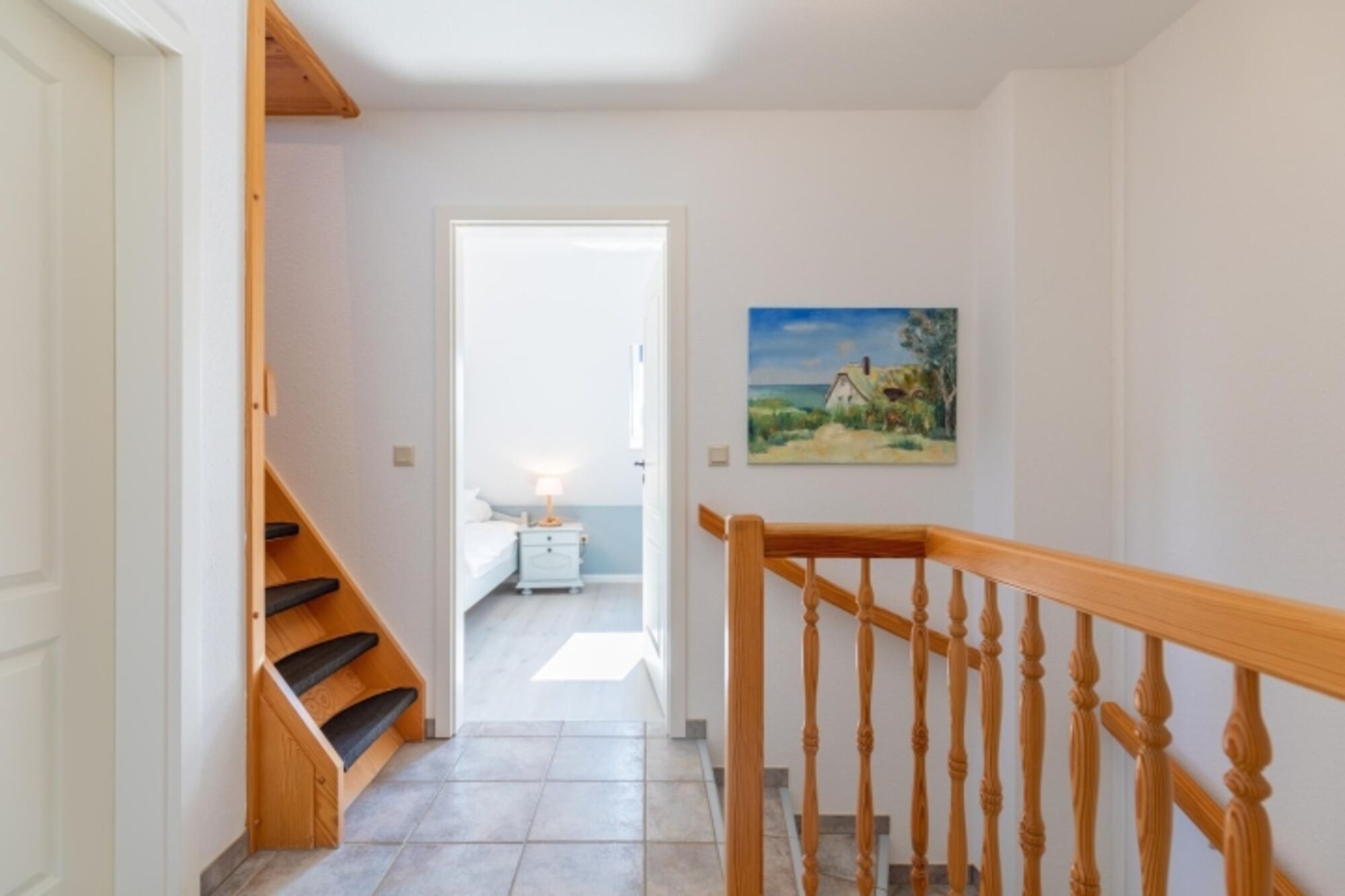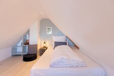 Über eine etwas steile Treppe erreichen Sie das dritte Schlafzimmer im 2. Obergeschoss der Unterkunft mit einem Einzelbett (140 x 200 cm).
