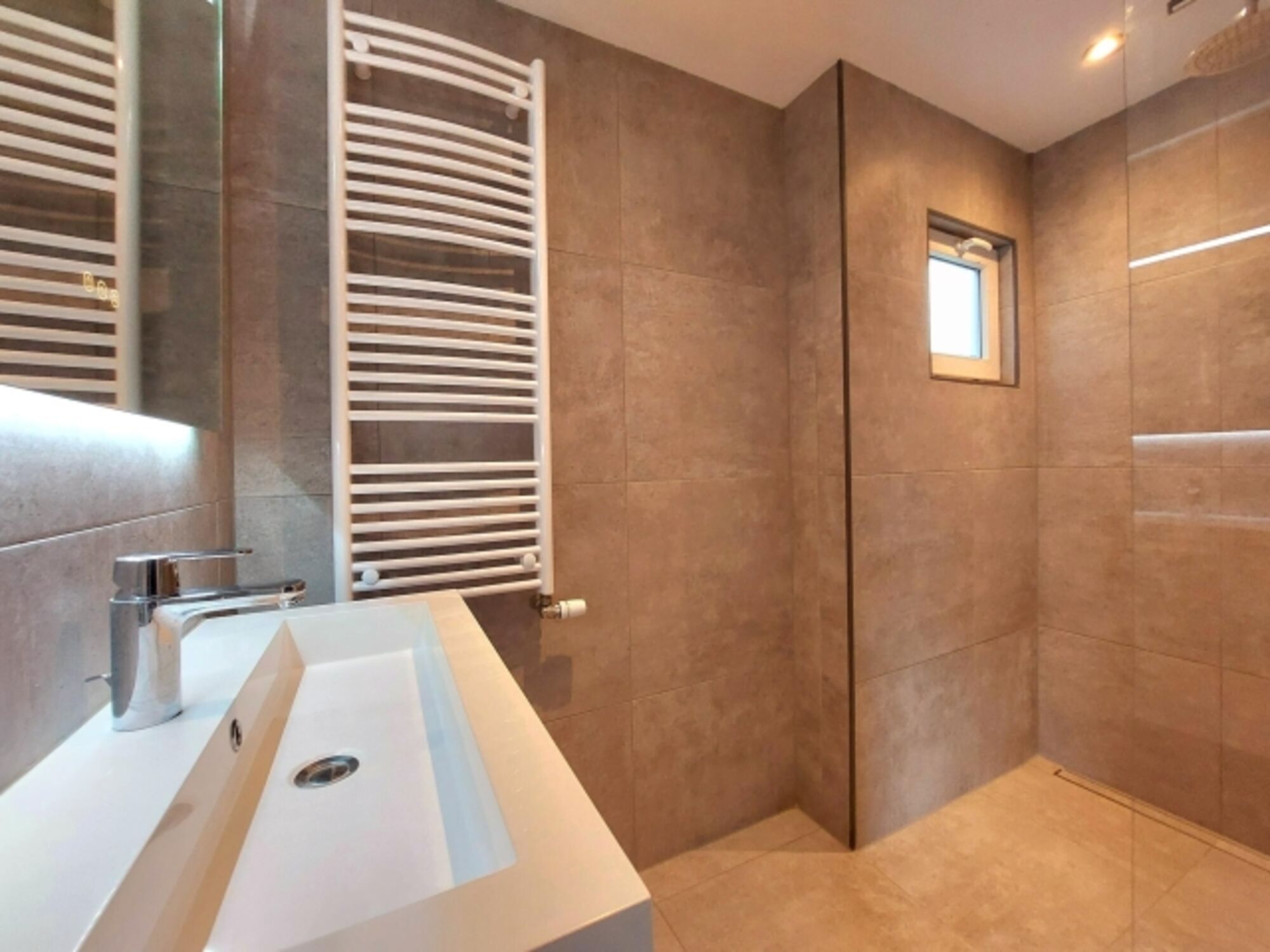Waschbecken, Regendusche, Spiegel