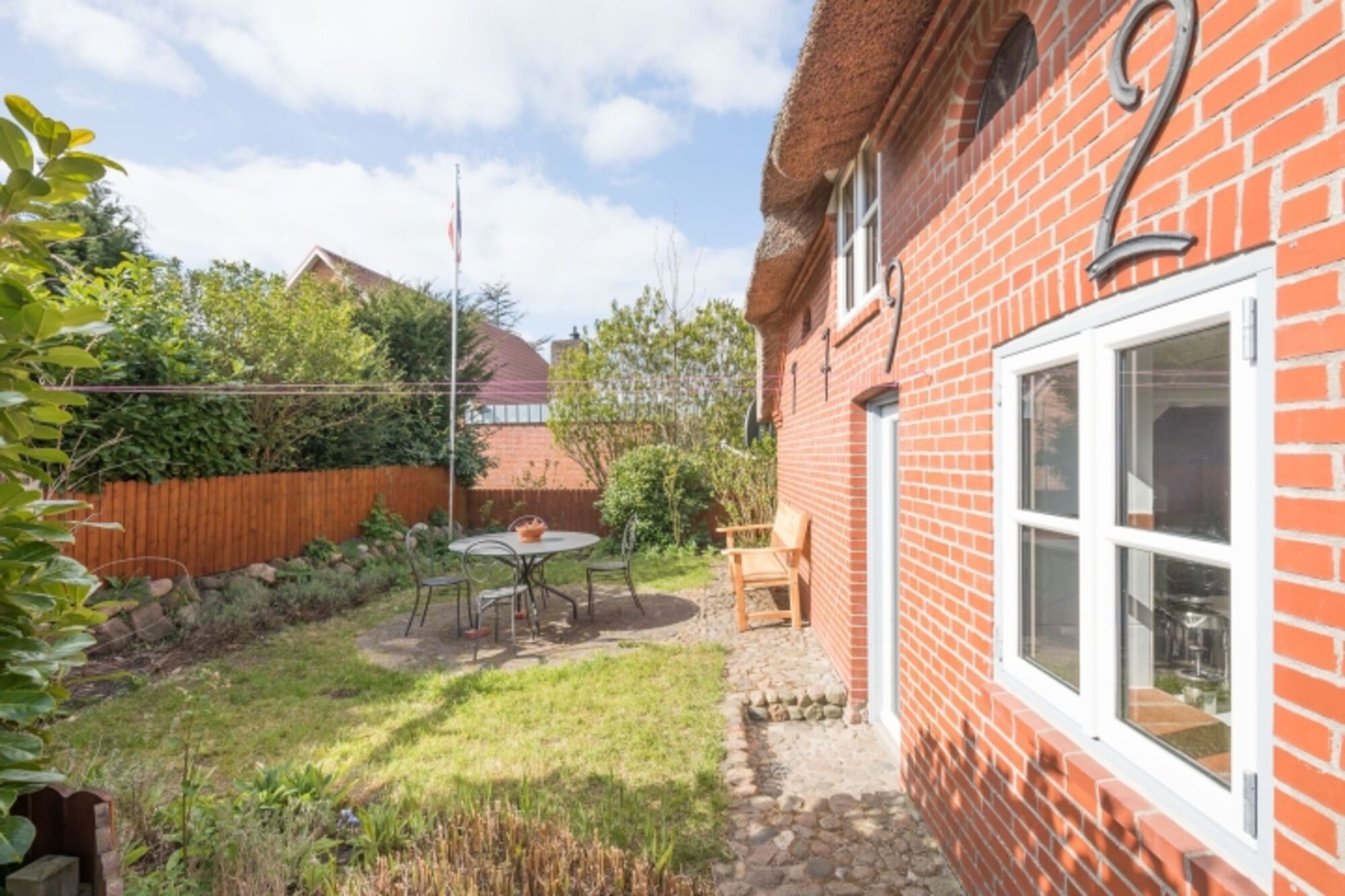 In dem kleinen, eingezäunten Garten können Sie auf der windgeschützten Terrasse den Tag auf bequemen Gartenstühlen ausklingen lassen.