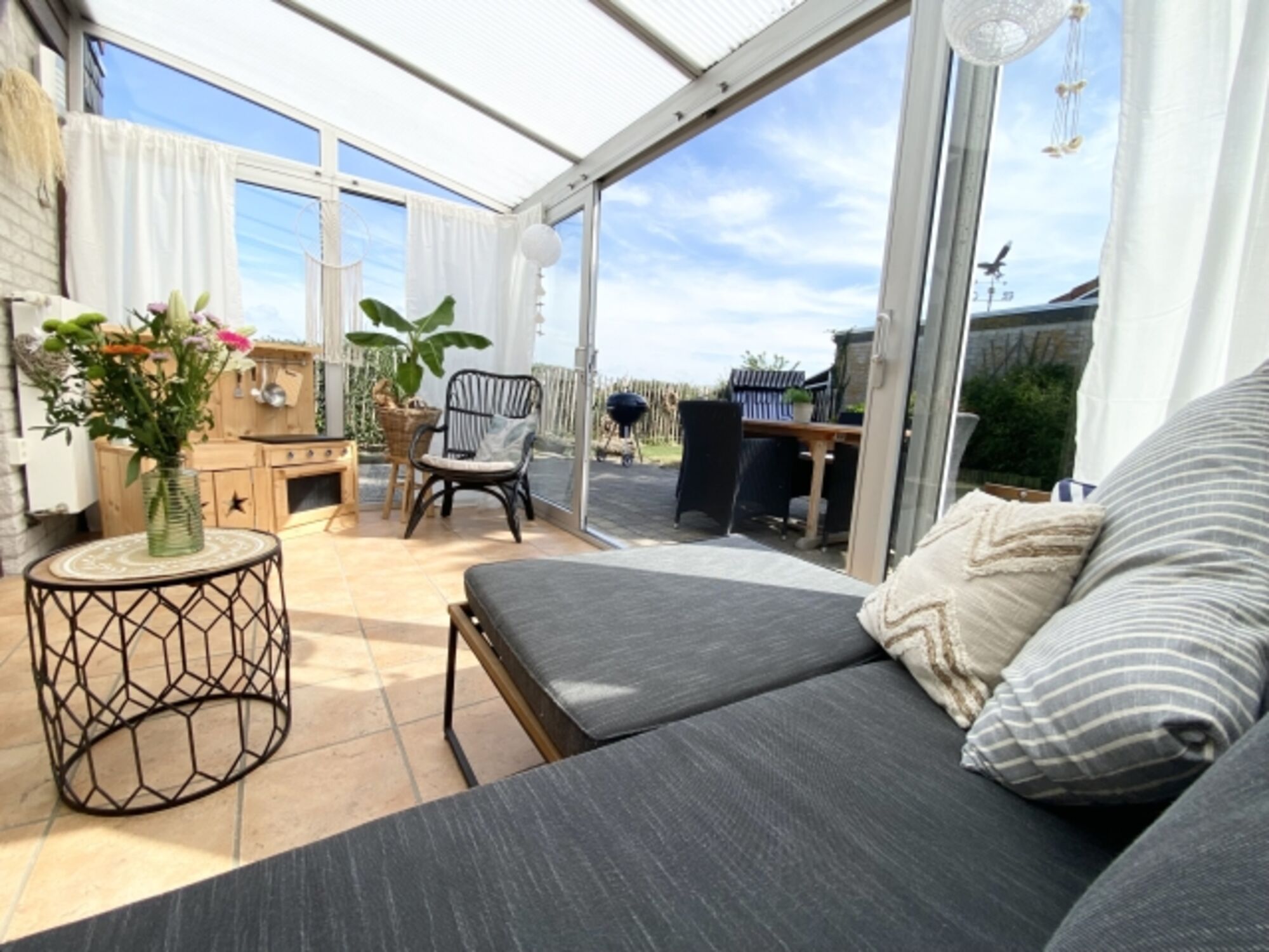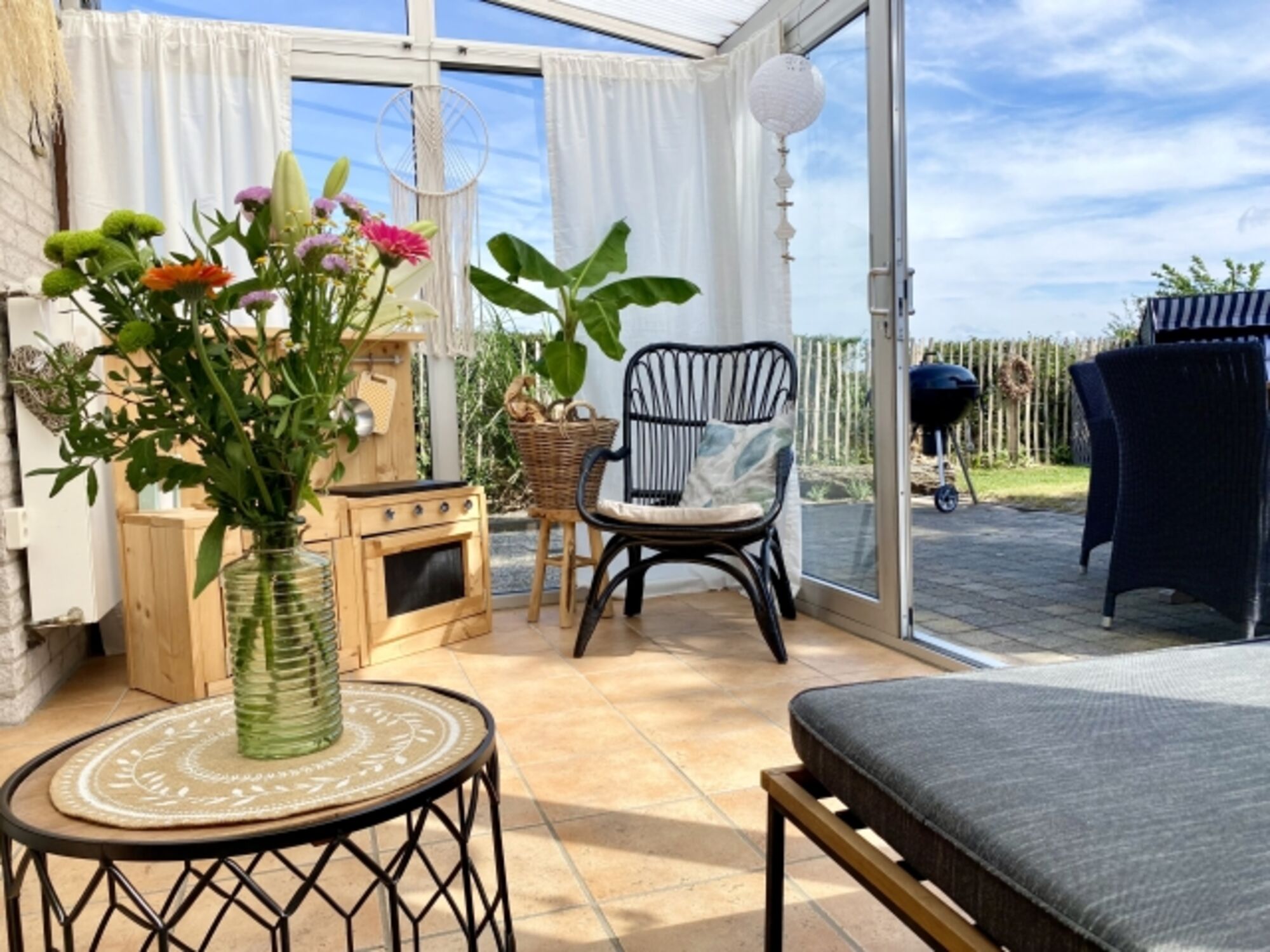 Genießen Sie den traumhaften Weitblick über Blumenfelder vom Garten aus. Unser stilvolles Ferienhaus für 4Personen bietet einen Wintergarten und einen Kamin für romantische Abende. 2 Hunde sind willkommen. Frisch renoviert und liebevoll geführt, erwartet Sie hier ein Ort zum Wohlfühlen. Nur 1,5 km vom Strand entfernt, ist unser Ferienhaus der ideale Ausgangspunkt für Ausflüge in die Umgebung. Entdecken Sie Restaurants und eine Vielzahl von Freizeitangeboten für groß und klein und die ganze Familie. Wir freuen uns auf Sie und wünschen Ihnen einen wunderschönen unvergesslichen Aufenthalt.