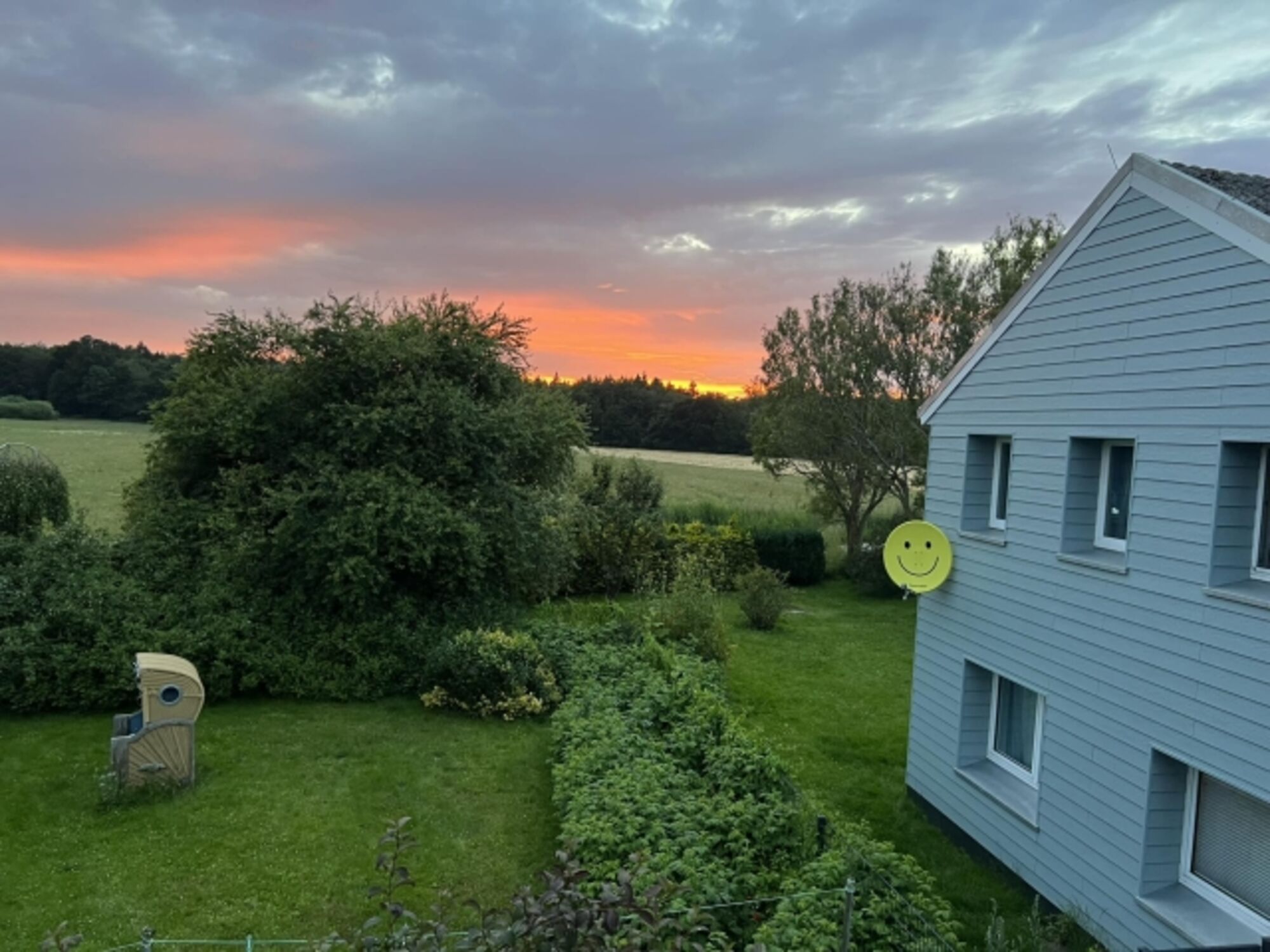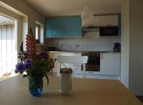 Die Ferienwohnung verfügt über einen eingezäunten Garten, mit geräumiger Terrasse nach Westen raus, man kann dort wunderschöne Sonnenuntergänge geniessen.