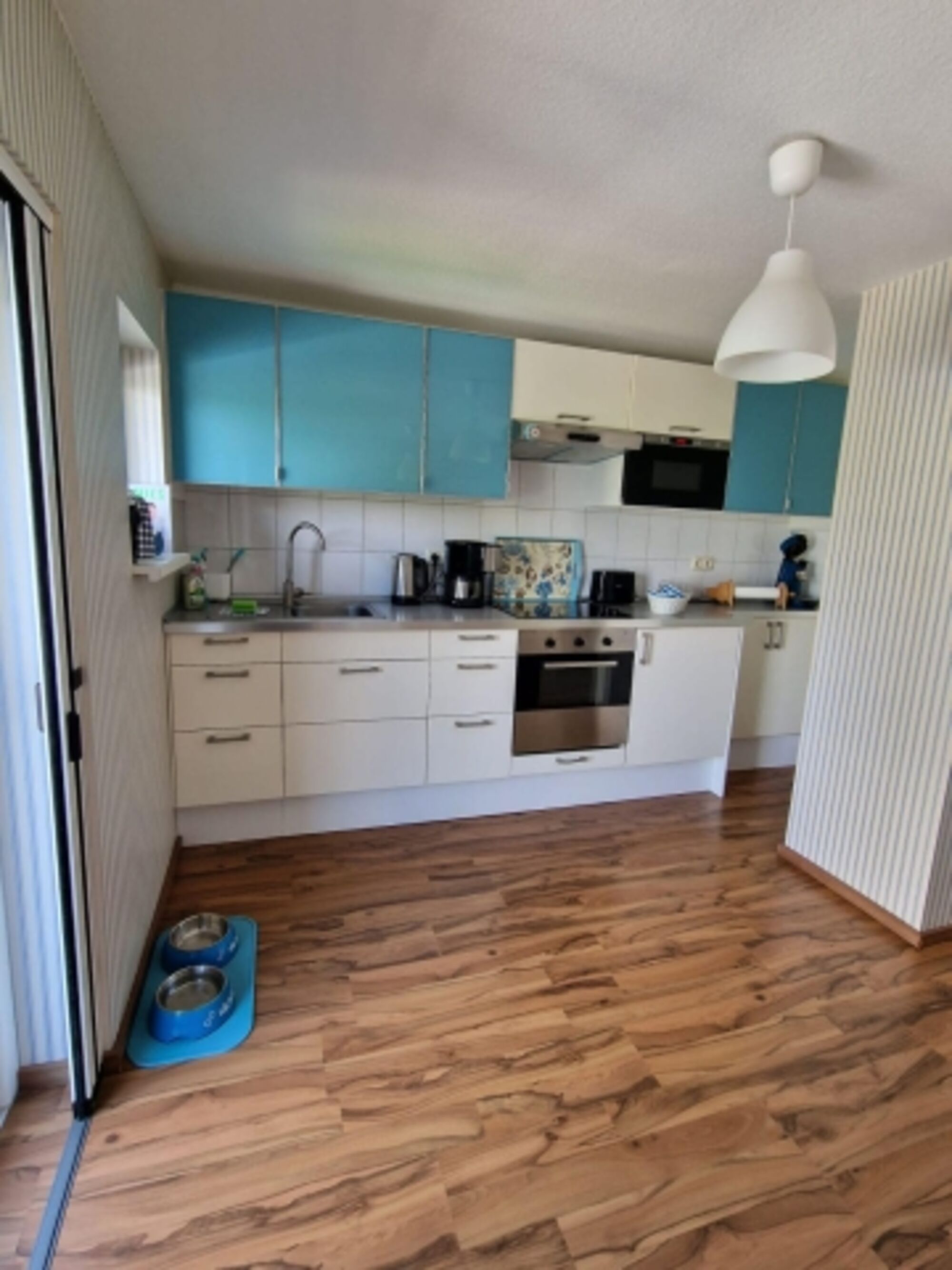 Die Wohnung ist gut ausgestattet, für die Hunde stehen Näpfe und die fabelhaften Dirty Door Mats zur Verfügung. Für Barfer hätten wir auch noch einen TK Schrank.