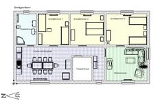 Die Betten in den drei Schlafzimmern lassen sich jeweils als Einzelbett oder Doppelbett stellen.