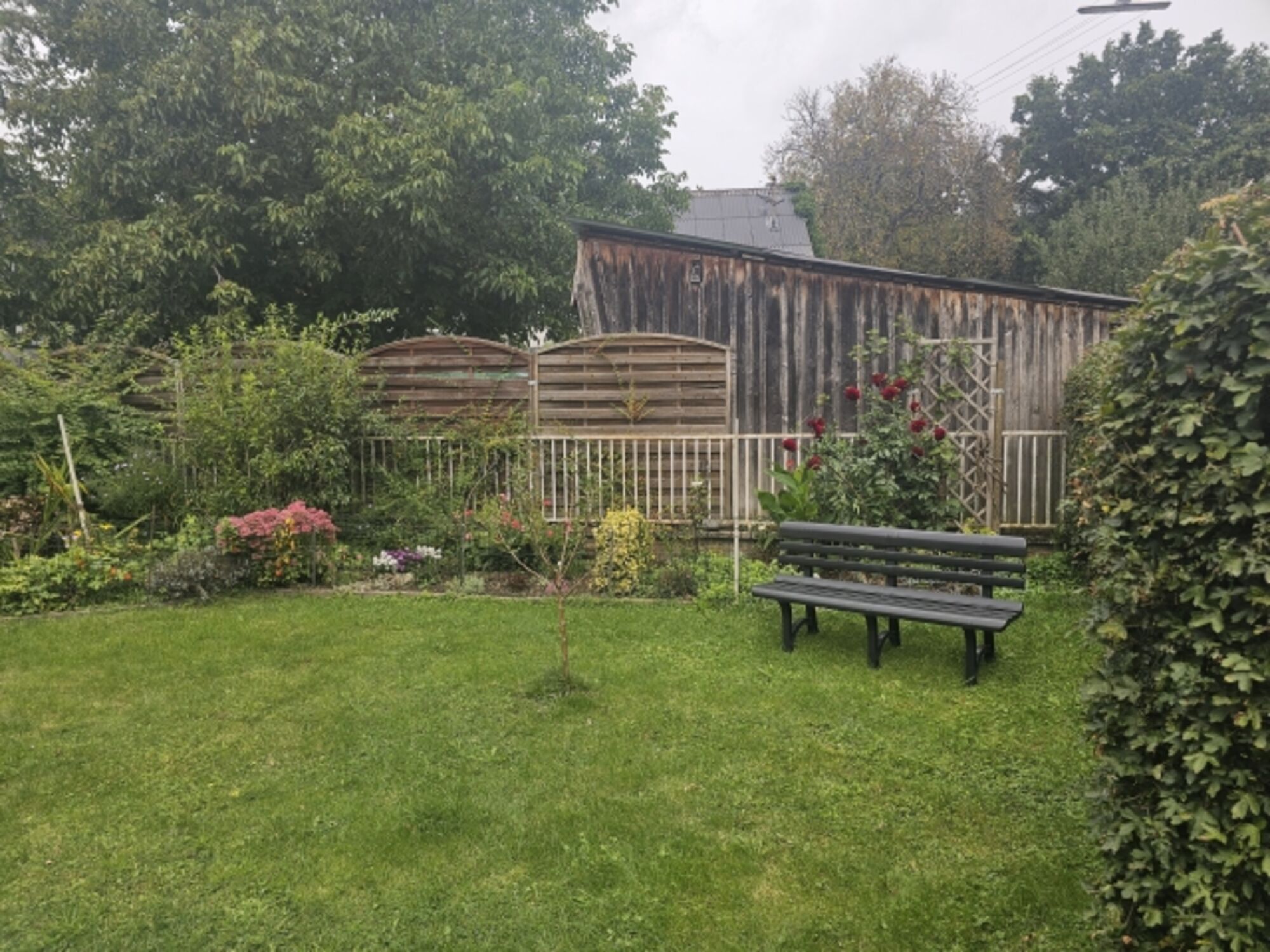 Liegewiese, Gartenmöbel, Kohlegrill, Hof
