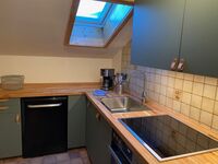 Die voll ausgestattete Küche beinhaltet Herd, Ceranfeld, Kühlschrank mit Gefrierfach und eine Geschirrspülmaschine.