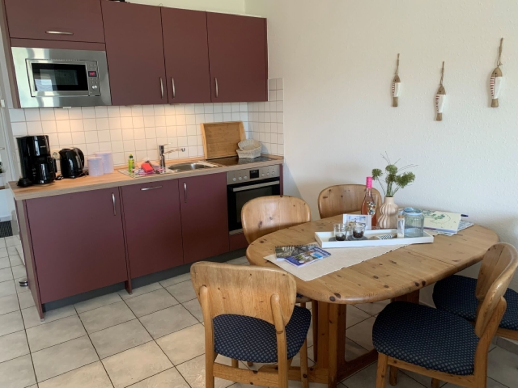 Die Küche ( im Mai 2023 wird diese noch komplett erneuert) ist im Wohnraum integriert und verfügt über alles was der Feriengast für eine Selbstversorgung benötigt.