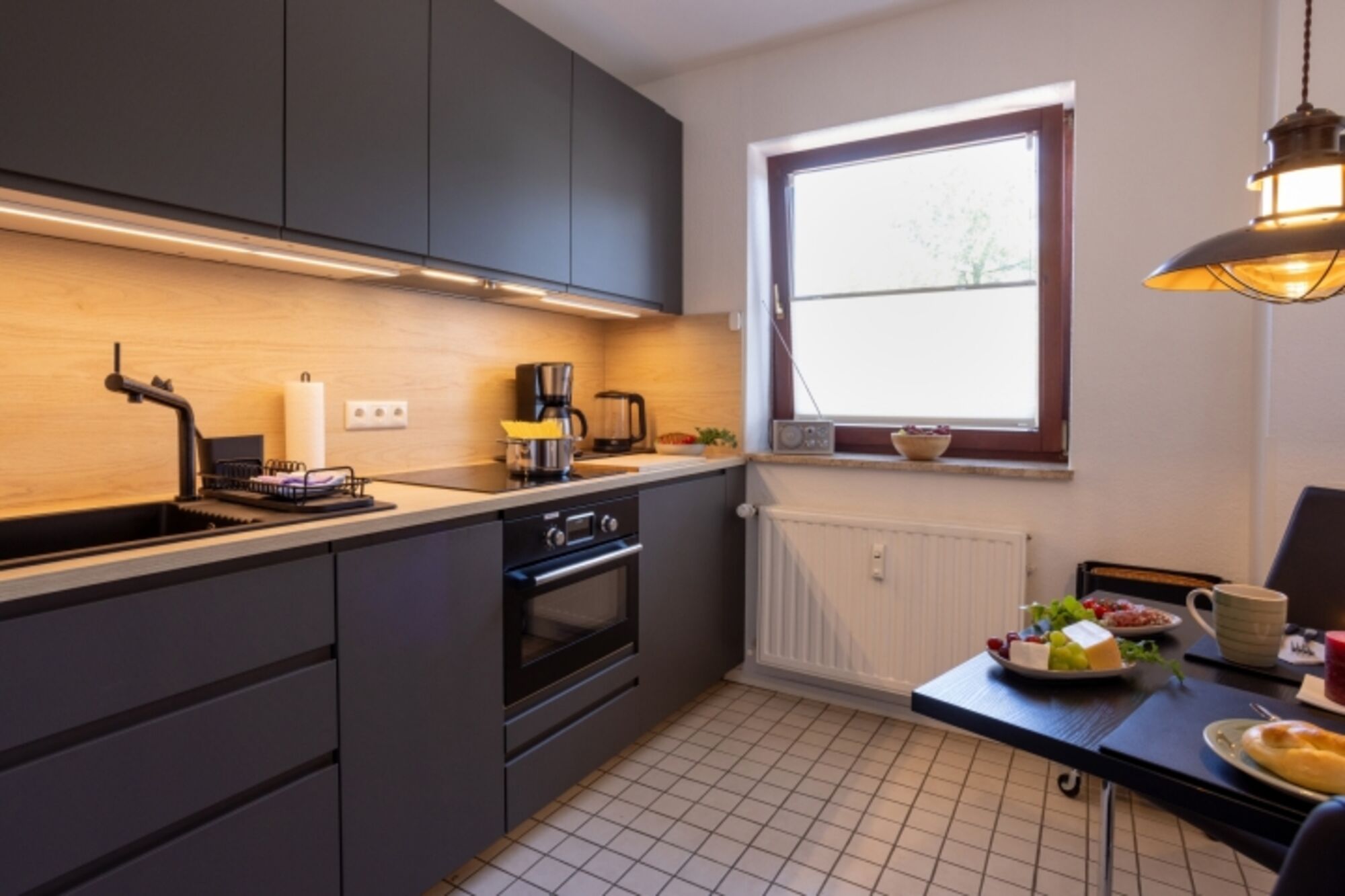 Die Küche wurde 04/2024 neu installiert. Ebenso das Mobiliar und die Beleuchtung. In der Küche befindet sich ein Bistrotisch für 2 Personen.