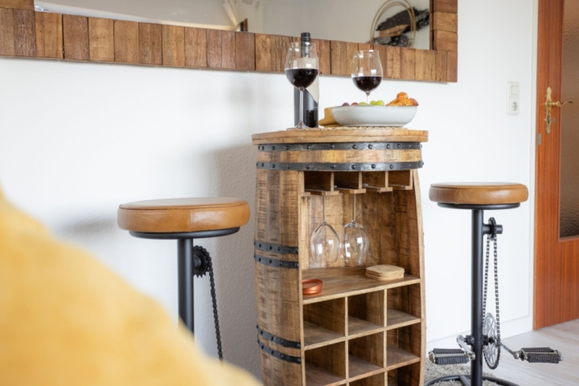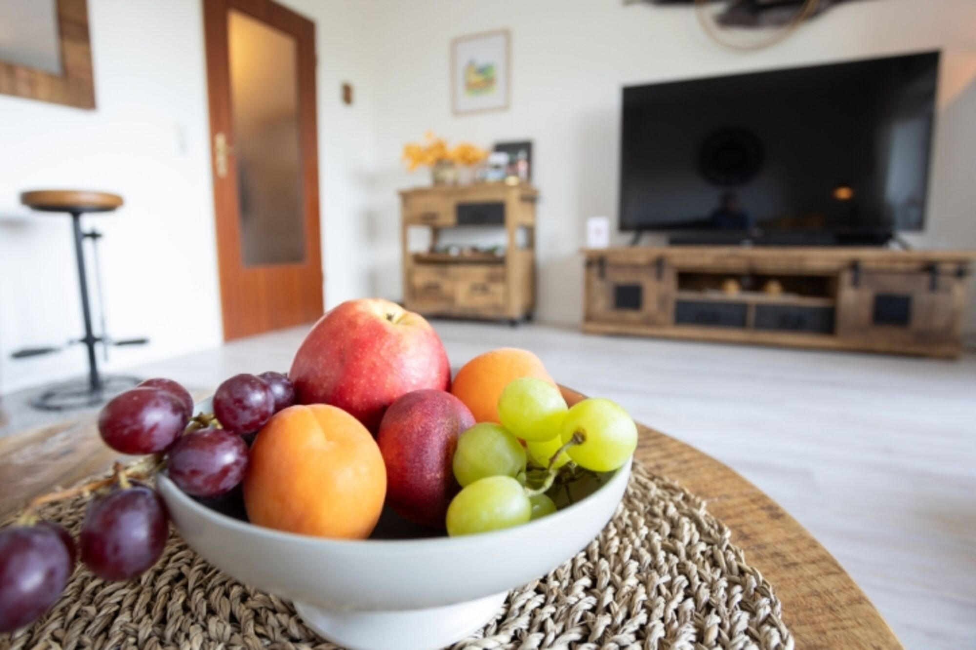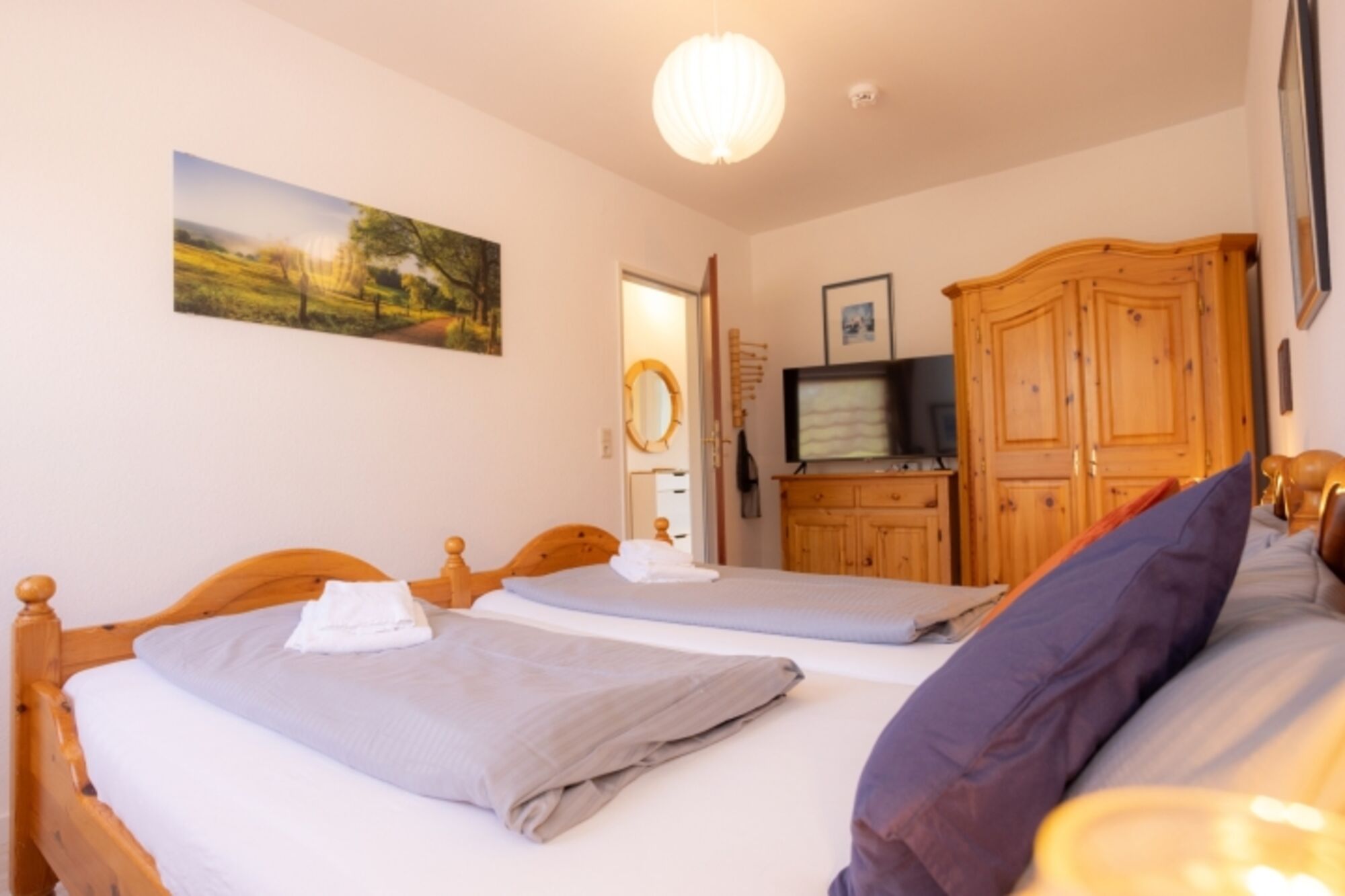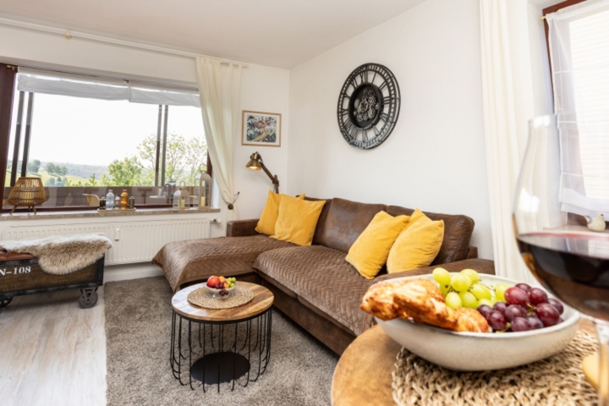 Die Ferienwohnung mit einer Größe von 53qm, befindet sich in der Hochparterre und ist für 2 Gäste ausgerichtet. Bis zu 2 Hunde sind sehr willkommen! Das Feriendomizil wurde in 03/2024 frisch renoviert und möbliert. Das Bad wurde 2021 saniert, eine neue Küche in 2024 eingebaut. Die Ferienwohnung ist komplett mit WLAN ausgeleuchtet. Der 65" große Smart TV bietet ihnen Streaming - Möglichkeiten über die bekannten Plattformen Netflix, Prime, Joyn usw. Die moderne Wohnung besitzt eine voll ausgestattete Küche mit Geschirrspüler, ein Duschbad und ein Schlafzimmer mit einem 2x2m großen Doppelbett. Dort befindet sich ein 2. Smart TV, der mit dem Internet verbunden ist. Der Blick vom geräumigen Balkon ist atemberaubend.