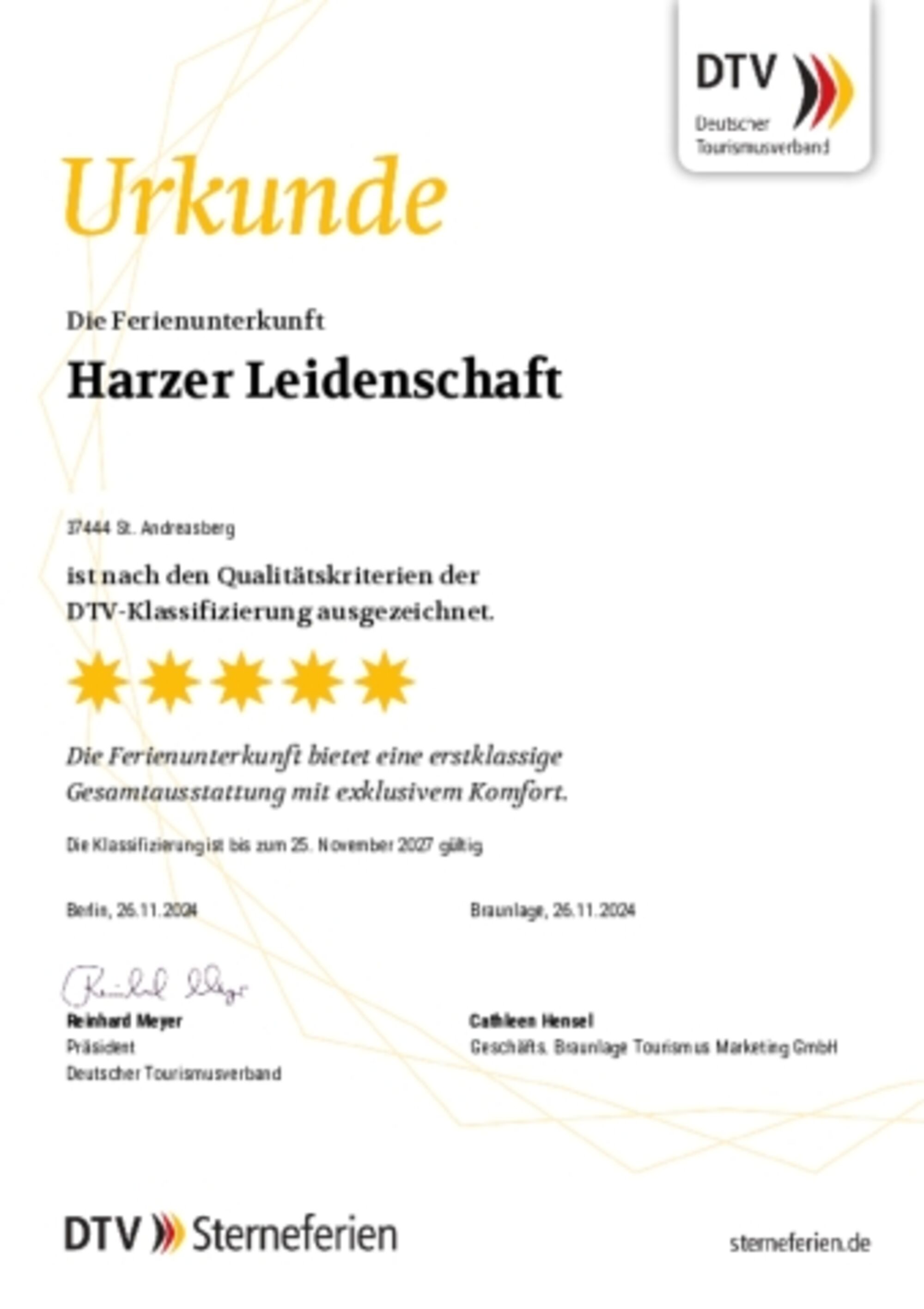 FeWo Harzer Leidenschaft in Sankt Andreasberg Sterne nach DTV: F