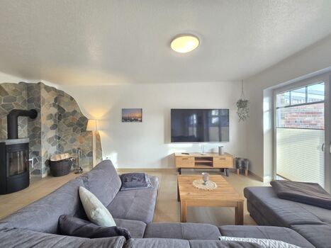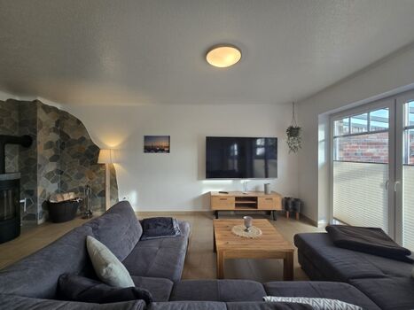 SMART-TV, TV-Flachbildschirm, Hi-Fi-Anlage mit Bluetooth, CD-Player, CD´s, Bücher, Kaminofen, Eckcouch, Fliegengitter