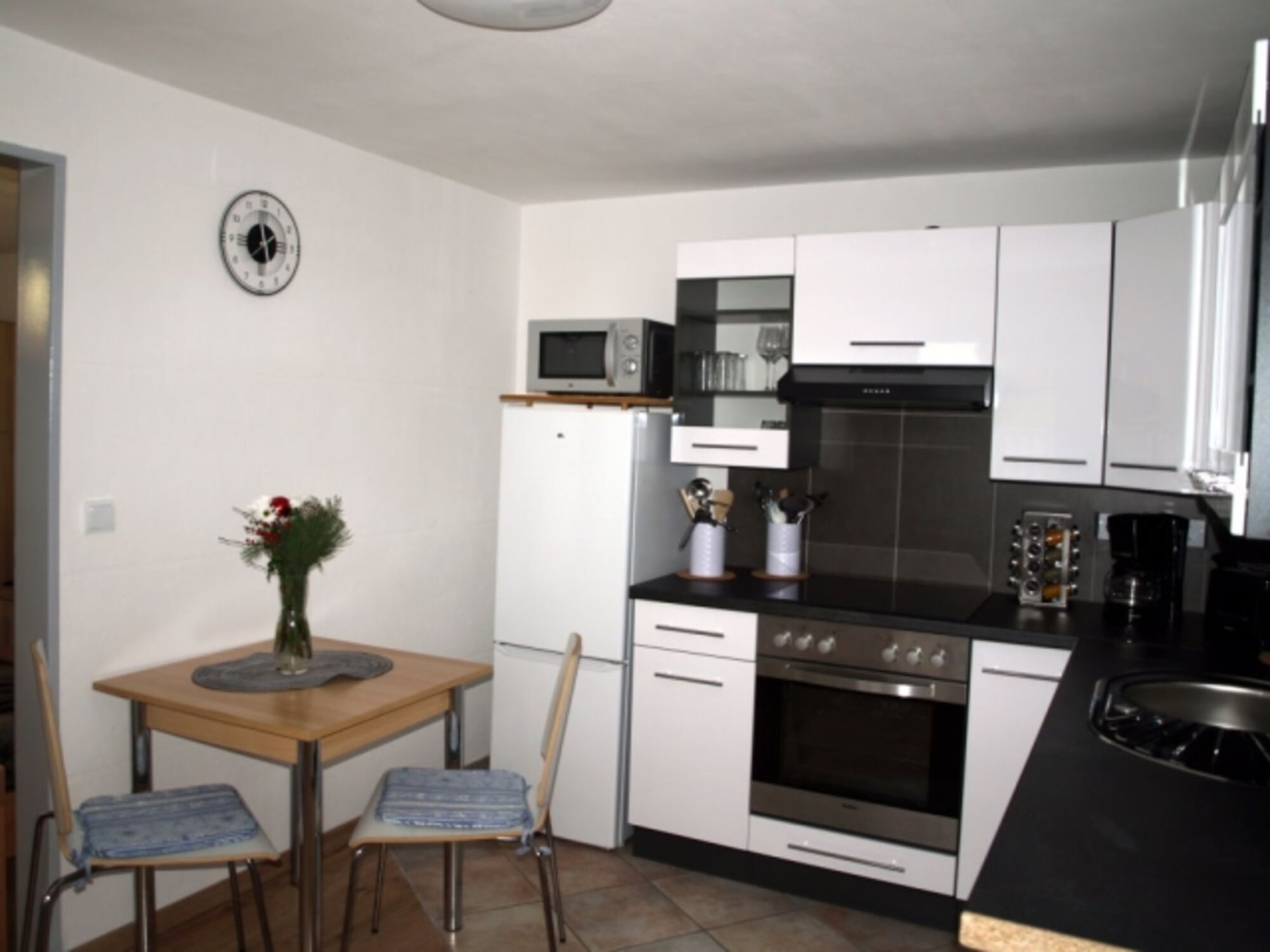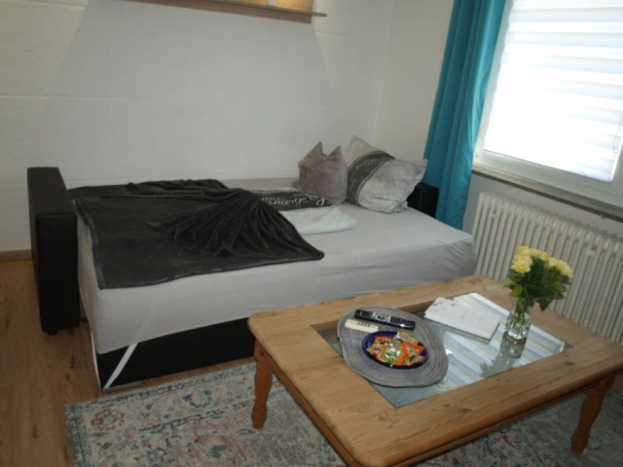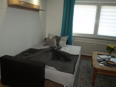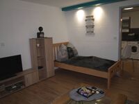 In der Wohnung finden bis zu drei Gäste Platz. Sie ist liebevoll möbliert und bietet ein Wohn- Schlafzimmer mit einem Schlafsofa und einem Einzelbett. Die bestens ausgestattete Küche lassen alle Möglichkeiten zu Selbstversorgung offen. Für das Badezimmer stehen Hygieneprodukte bereit.