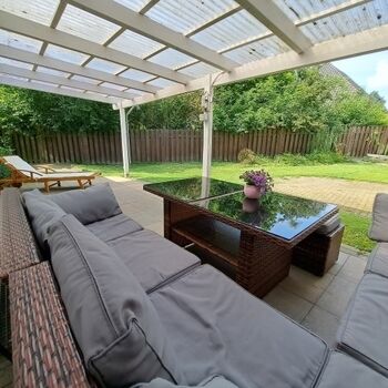 | Ausstattung für Hunde: | Hunde wohnen kostenfrei Hundebademöglichkeit in der NäheHundespaziergang vom Haus aus möglich Silvester Böllerarm Umfriedeter Gartenbereich (komplett mit Zaun / nicht nur Hecke) Zaunhöhe bis 2,00 Meter |