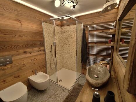 Die Hütte wurde im Jahr 2022 nach Trentiner Tradition komplett renoviert und durch die Aufwertung typischer lokaler Materialien, Lärchenholz, Tanne und Granit, eine raffinierte, elegante und einladende Umgebung geschaffen.