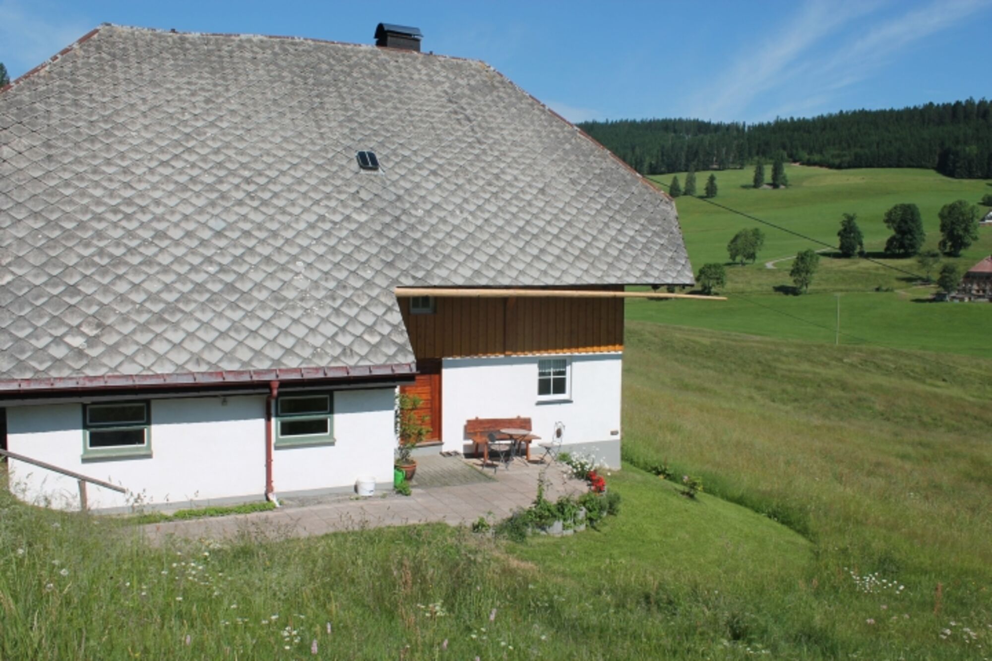 In unserem Häusle, das zum Hofgut Hanisenhof gehört, wohnen nur Sie in völliger Alleinlage. Sie haben von hier aus einen wunderschönen weiten Blick ins Spriegelsbachtal und hinüber auf den Hanisenhof.