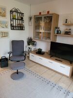 Unser modern eingerichtetes Wohnzimmer wird durch seine 2 Terrassentüren lichtdurchflutet. Eine neue U-Wohnlandschaft +elektr. Kamin bietet Ihnen Platz zum gemütlichen zusammen sitzen. Der Fernseher mit SAT-Anschluss, DVD-Player und die Mini-Stereoanlage lassen Sie zusätzlich entspannen.