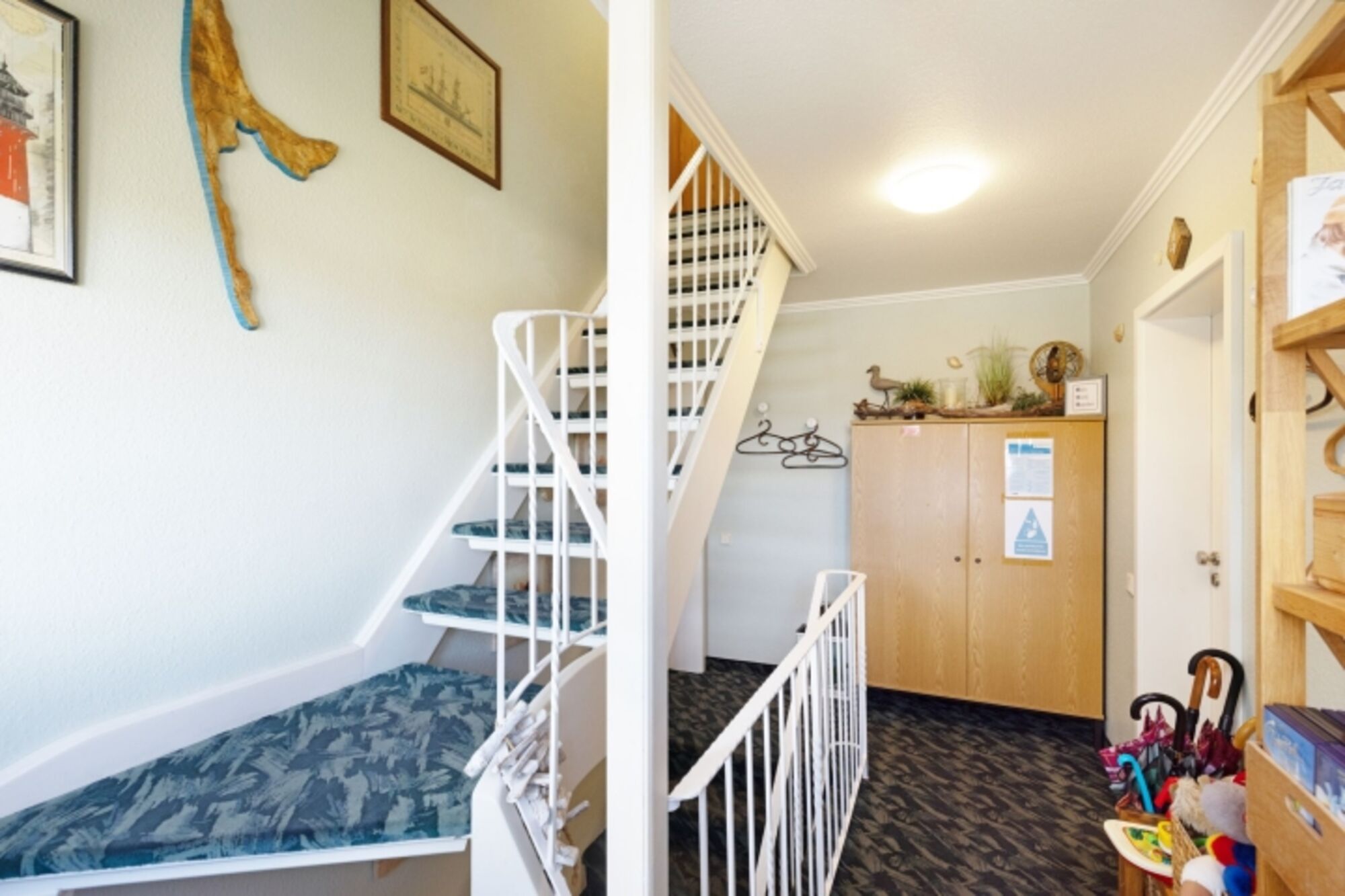 Die Ferienwohnung verfügt über ein Schlafzimmer mit Doppelbett (im zweiten Obergeschoss) und eine Schlafcouch für zwei Personen mit zusätzlichen Topper im Wohnzimmer.