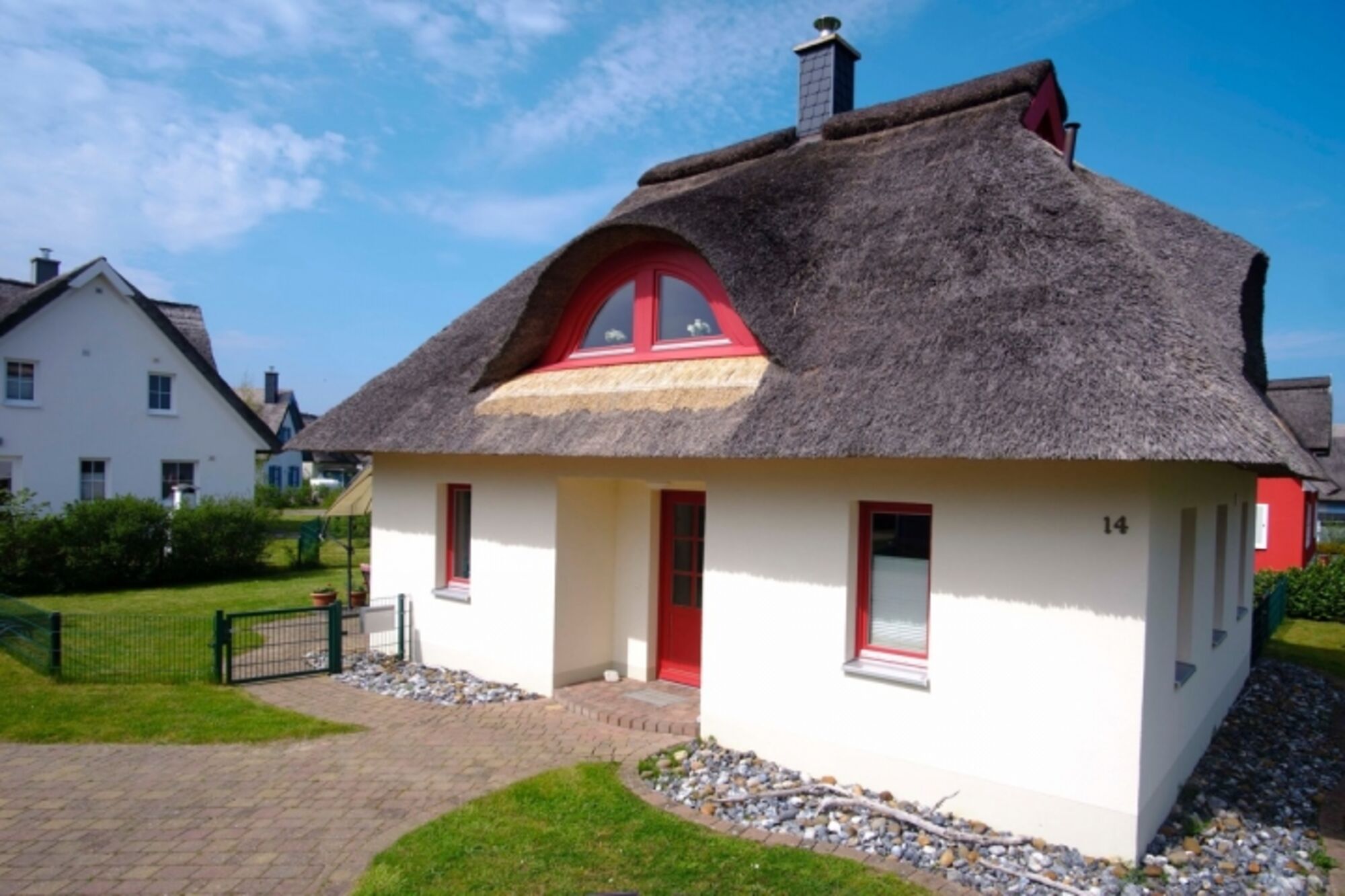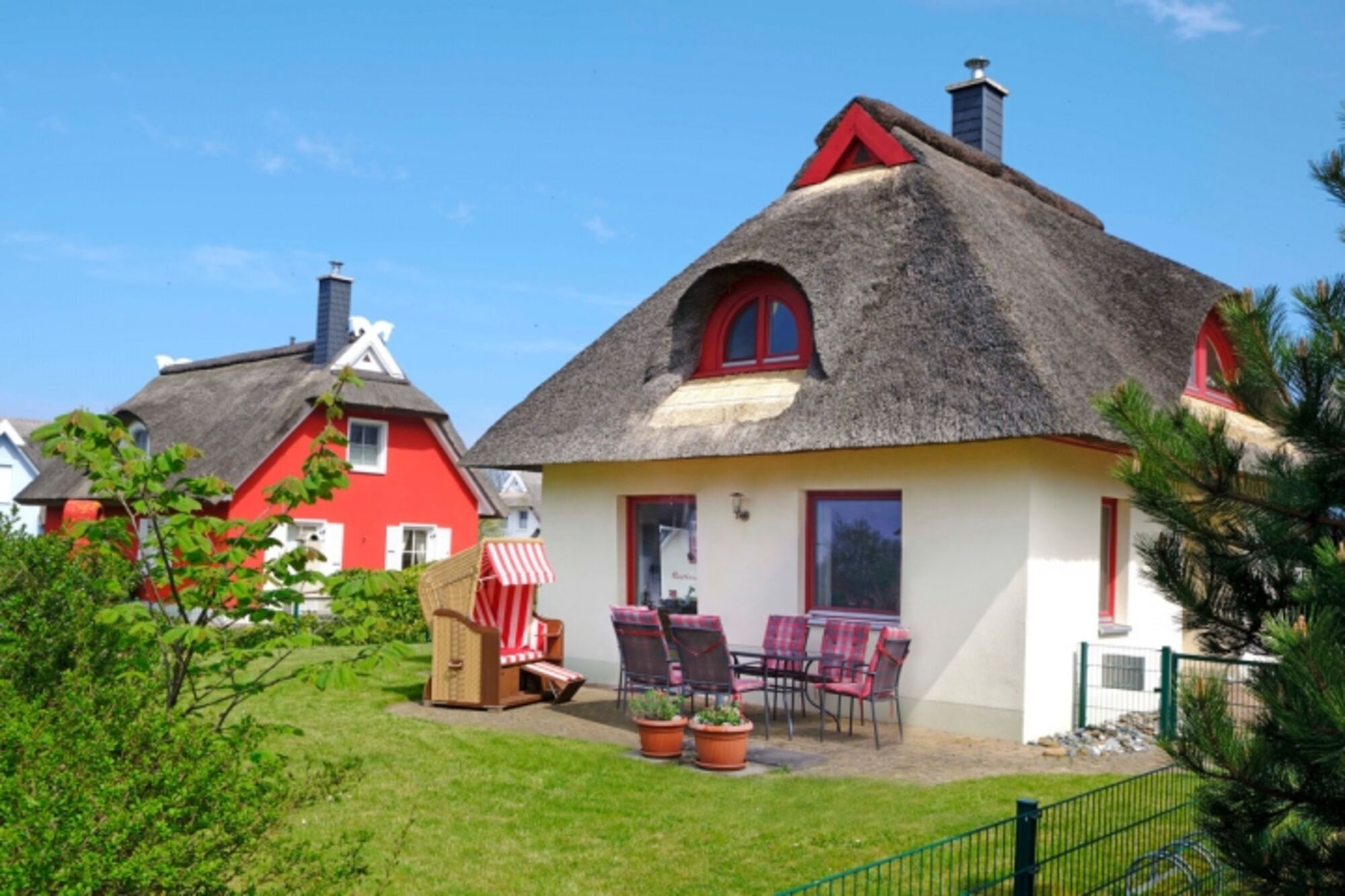 Dieses 90 m² große, reetgedeckte Ferienhaus "Seemöwe" für bis zu 4 Personen befindet sich in dem kleinen Ort Glowe auf der herrlichen Sonneninsel Rügen.