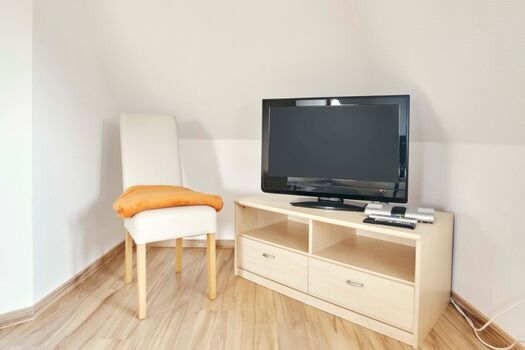 Schlafräume im OG: 1 Schlafraum mit 1 Doppelbett und Fernseher, 1 Schlafraum mit 2 zusammenstellbaren Einzelbetten; Fußböden: Vinyl Doppelbett 1,80 x 2,00m