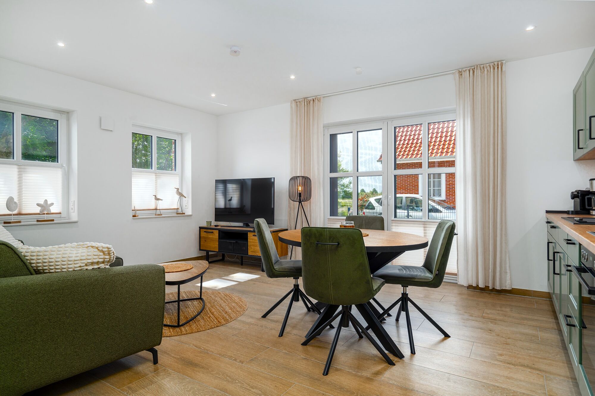 Unsere Ferienwohnung „Vista 4“ liegt in einem exklusiven Neubau Haus mit nur drei weiteren Wohnungen. Hier gilt: Ihr Auto können Sie auf dem reservierten Parkplatz am Haus stehen lassen, denn alles ist Dank der ausgezeichneten Lage fußläufig erreichbar. So sind es nur 650m Fußweg zu den bekannten Zwillingsmühlen und auch der Hafen ist auf einem kurzen Spaziergang schnell erreicht. Sie laufen durch die malerischen Gassen Greetsiels, mit zahlreichen Geschäften und Restaurants. Auch ein Ausflug zum rot-gelben Pilsumer Leuchtturm darf nicht fehlen.