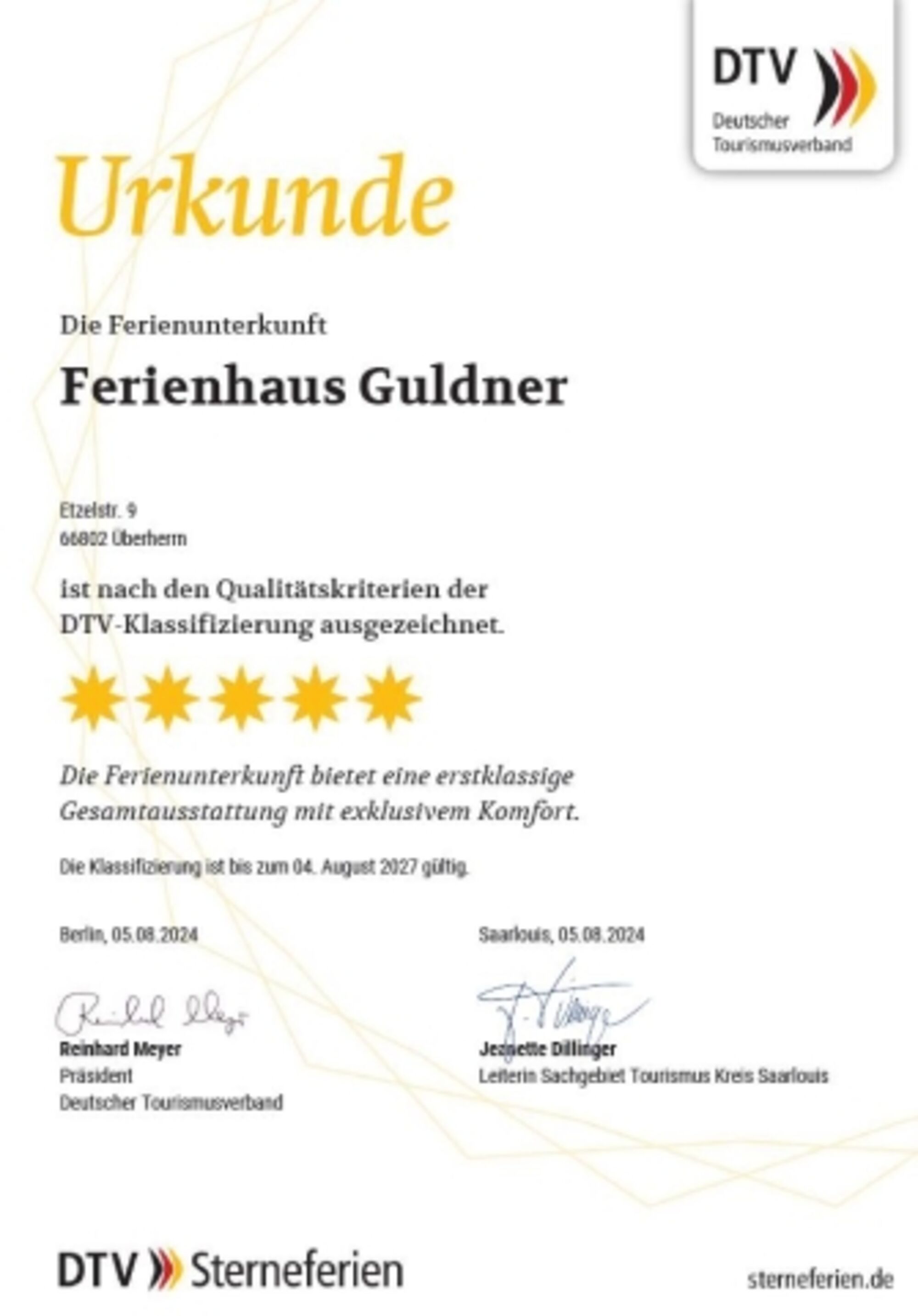 Ferienhaus Guldner in Überherrn (OT Bisten) Sterne nach DTV: F