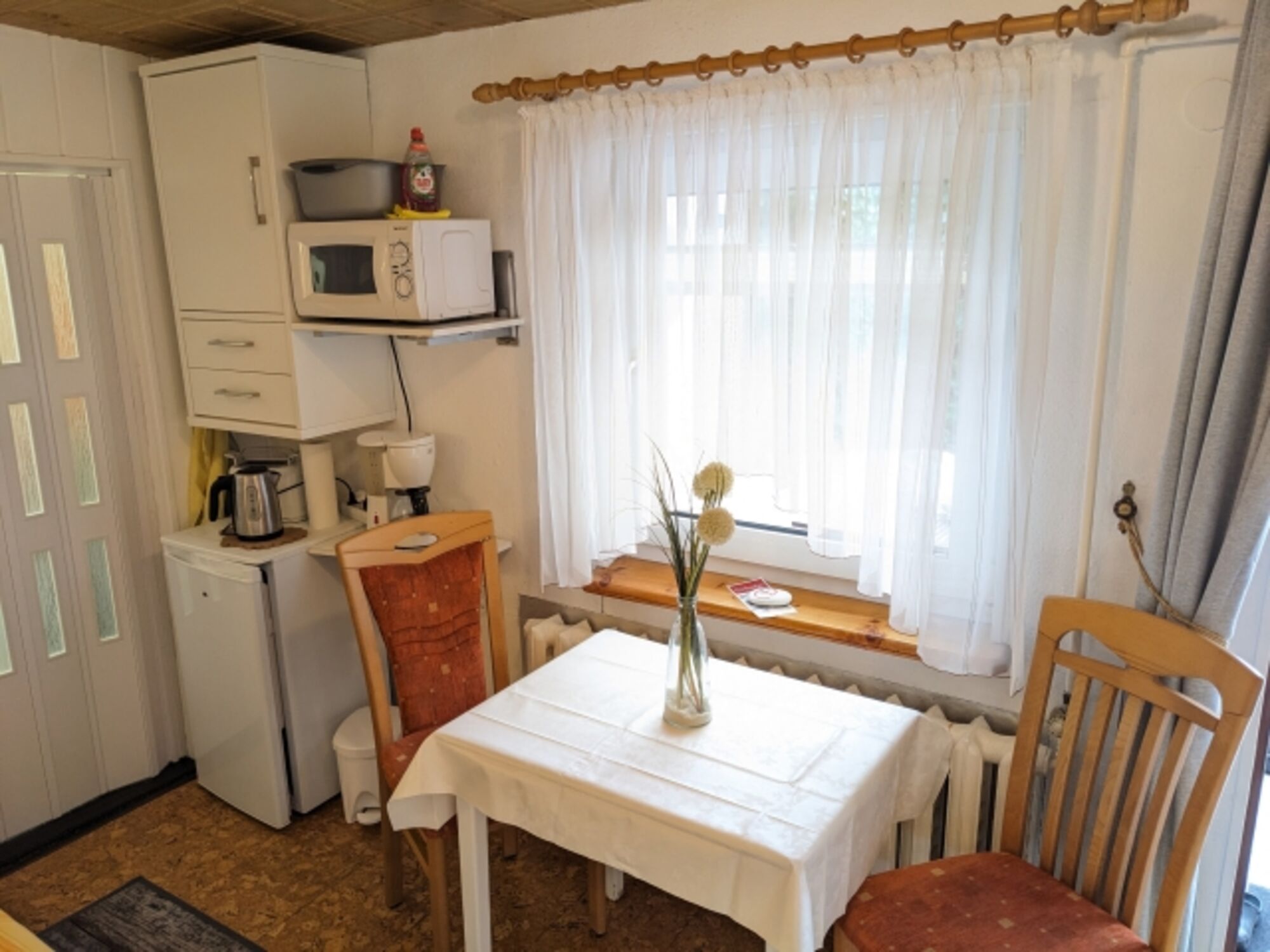 Unser Ferienzimmer "Norbi" ist ein einfach ausgestattetes Ferienzimmer für bis zu 2 Personen mit einer kleinen Küchenecke und einem eigenen Badezimmer mit Dusche und WC. Vor dem Ferienzimmer, im Innenhof unseres Grundstücks, befindet sich eine überdachte Sitzecke, die bei schönem Wetter zum Verweilen in der Sonne einlädt. Ein Pkw- Stellplatz auf dem Grundstück ist vorhanden.