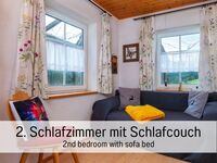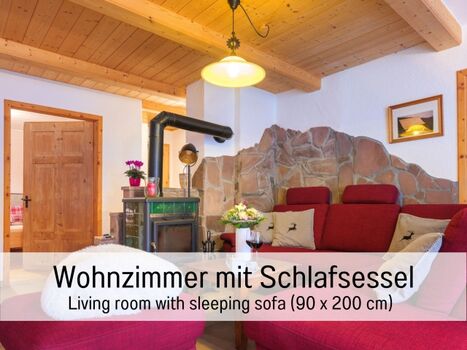 Das Herzstück ist der große offene Wohn- und Essbereich mit sehr gut ausgestatteter Küchenzeile und einem gemütlichen Kaminofen. Das Bad hat eine schöne gemütlich Sauna für 2 Personen und eine Whirlwanne. Platz für 4 Personen finden Sie in den zwei Schlafzimmern. Ein weiterer Gast findet im Schlafsessel platz. Die Fußbodenheizung strahlt gemütliche Wärme aus.